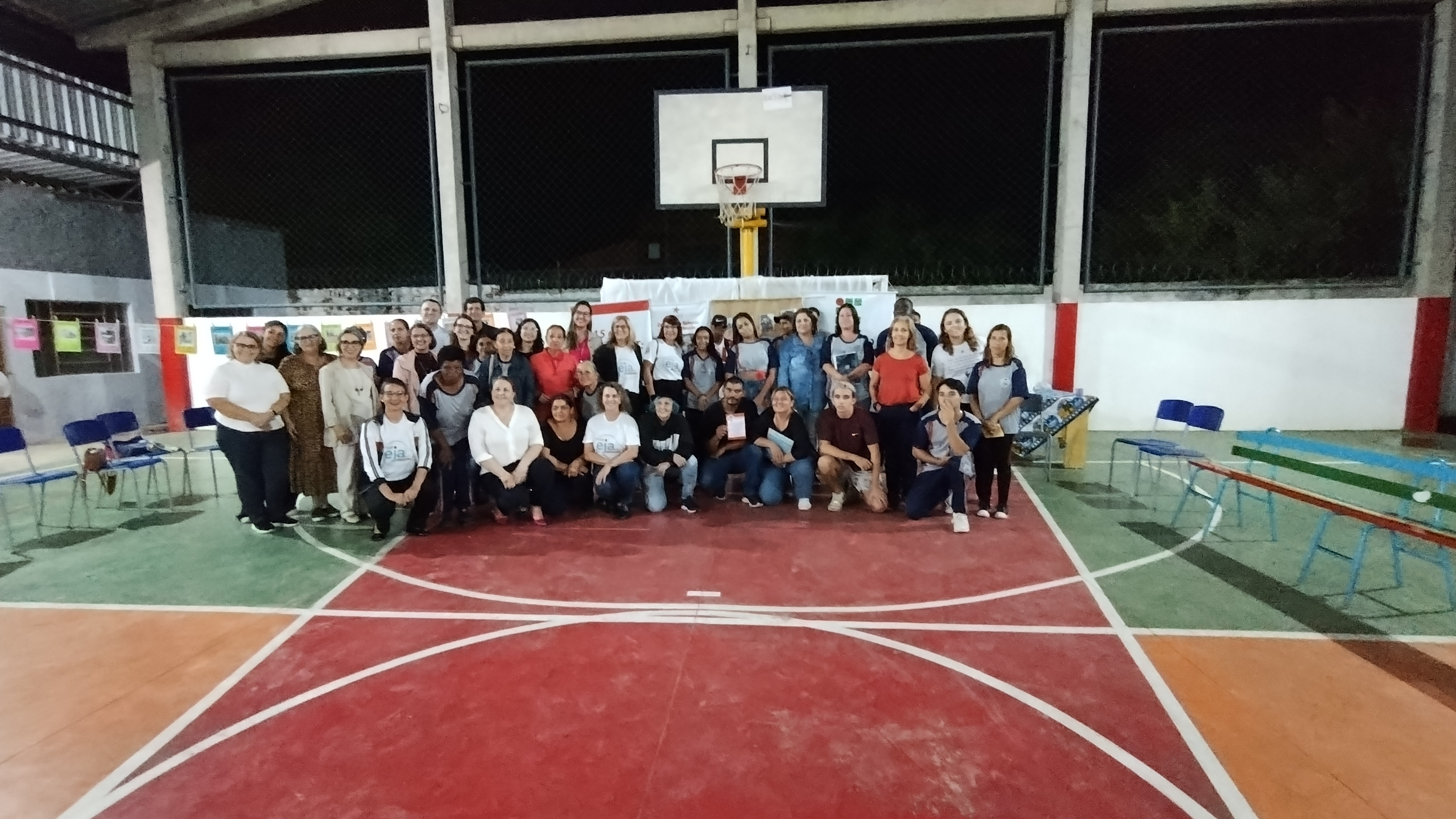 Depois do diretor foi a vez da vereadora Luci falar, ela enfatizou que estava ali como educadora e não como vereadora, disse que conhecia a realidade de quem estuda de noite, pois já trabalhou nesse turno; ela também relembrou que a EJA é um privilégio, pois não são todas as escolas que possuem. Ressaltou que ninguém solta a mão de ninguém, como dito anteriormente pela Cleia e que está a disposição para ajudar como puder, que se um perceber que outro colega não está vindo podem chamar ela, que ajuda, vai na casa e auxilia como pode, pois seu trabalho é somar e não deixar ninguém desistir.