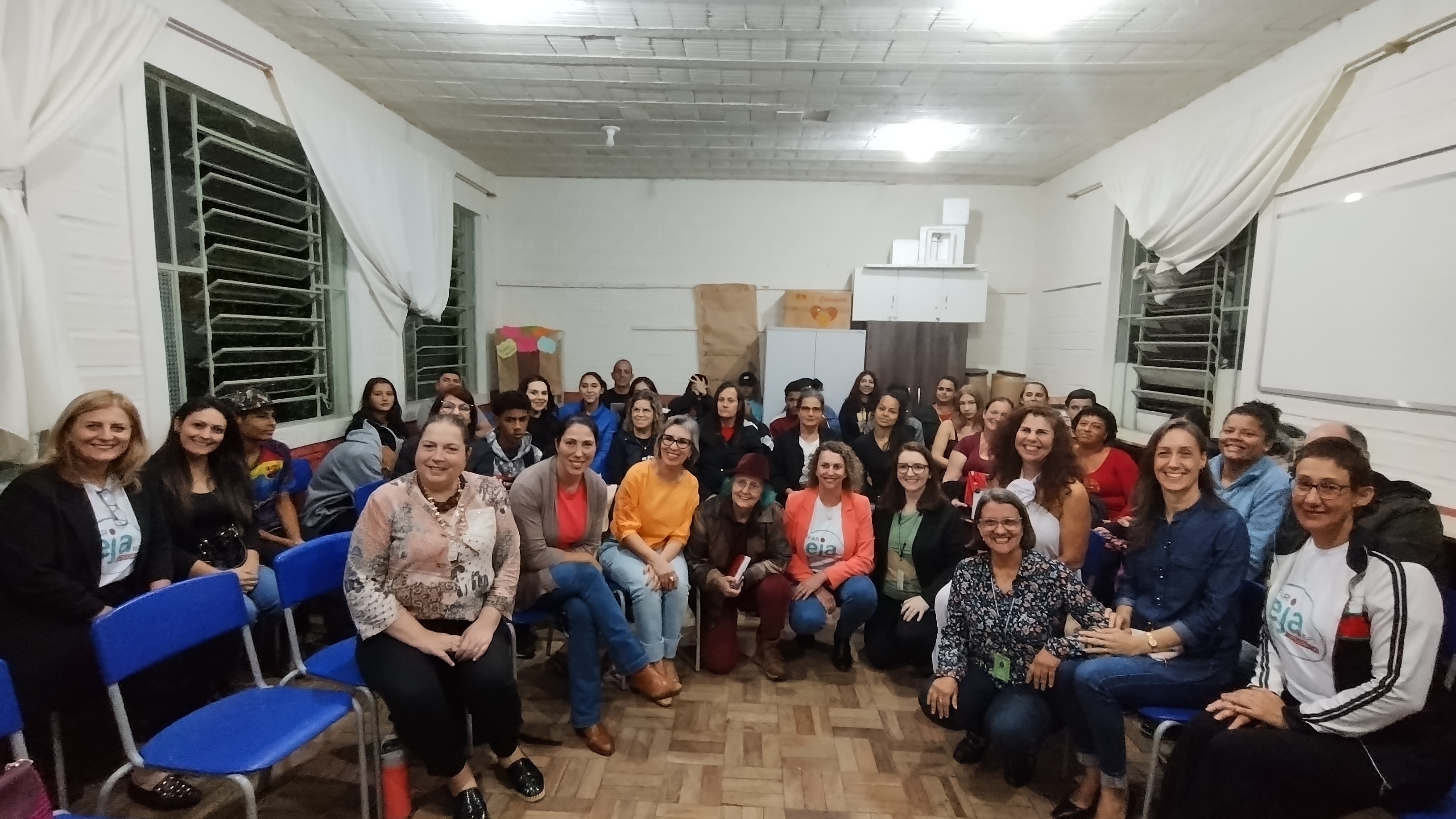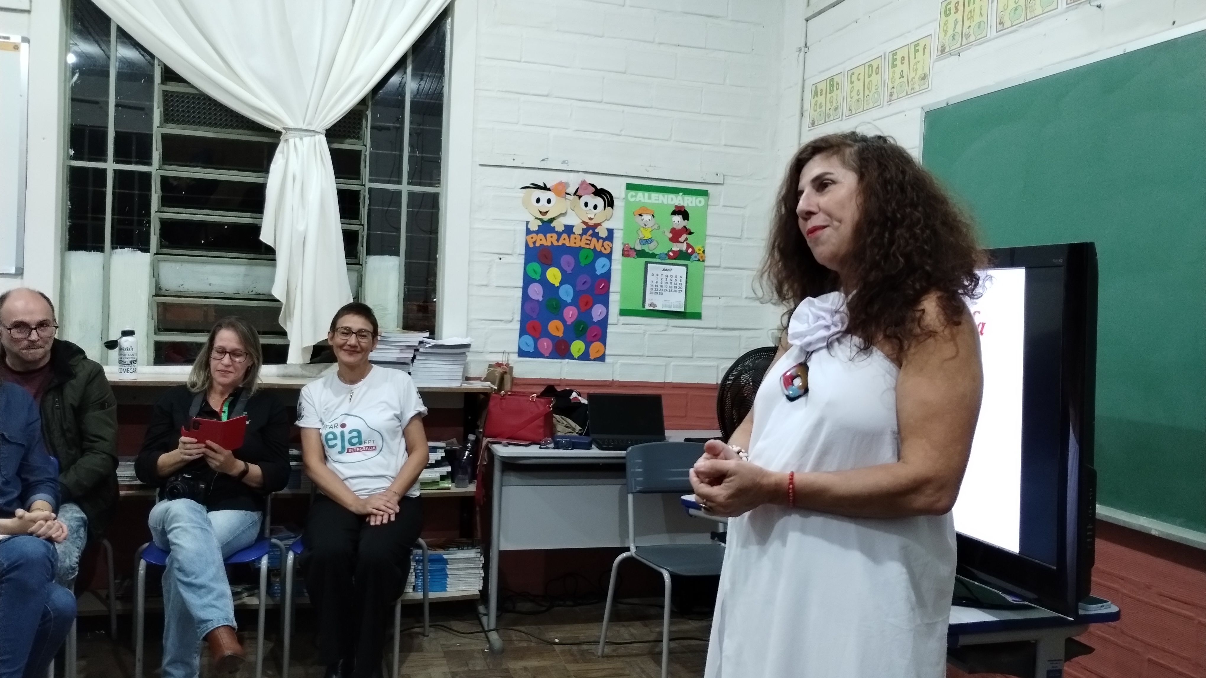 Cristina lembrou que a EJA já existe há bastante tempo, mas nesse formato era um sonho, que demorou a sair do papel. Mas agora é uma realidade, em 2023 formamos 99 estudantes e recebemos feedbacks de alunos/as que foram promovidos/as ou arrumaram um emprego ou empreenderam. “São muitas pessoas aqui na escola, na prefeitura e no IFFar trabalhando por cada um de vocês, para que se qualifiquem” disse a professora que fechou falando que a escola João da Maia Braga é destaque, pois tem uma aluna que representa a EJA do município no fórum estadual da EJA e vai para um encontro nacional, representando o estado: Eliliane.