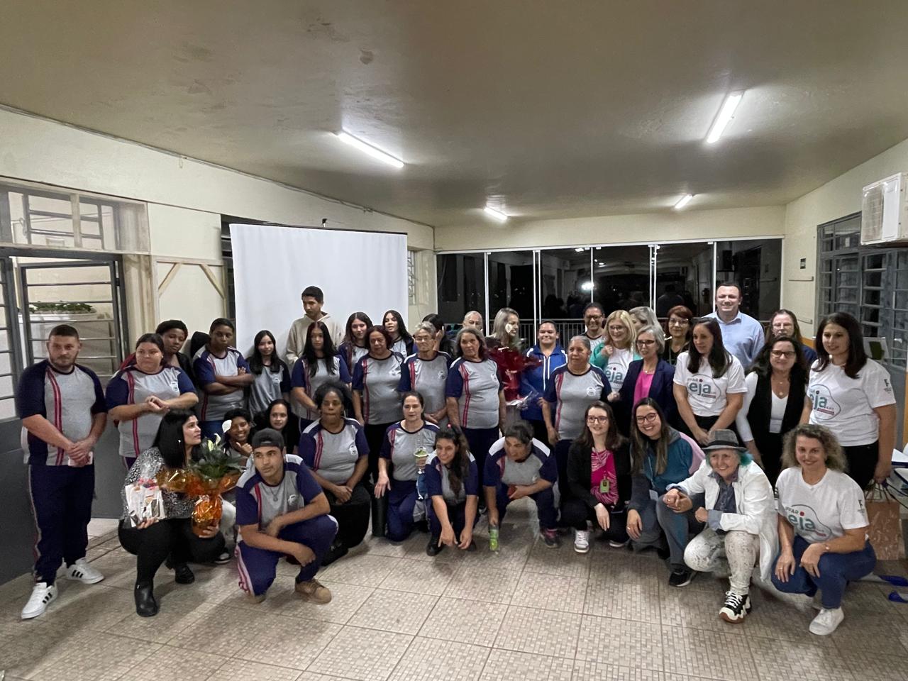 Deise enunciou que era uma satisfação imensa estar na escola, pois foi professora desta escola antes de ir trabalhar na secretaria. Após se dirigiu diretamente aos/as alunos/as: turma 4 vejo vocês em dezembro deste ano na formatura; turma 3 vejo vocês ano que vem e turma da alfabetização, espero que entrem no técnico e logo, logo, também terminarão. “O tempo passa rápido, enfrentem o desafio porque vale a pena!” finalizou. A vereadora Luci relembrou que sempre quis fazer um projeto no noturno e agradeceu a Bruna e Fernanda, da escola, por terem aceito o desafio. “Sonho que se sonha sozinho é apenas um sonho, mas um sonho que se sonha em coletivo, se transforma em realidade!” disse a vereadora.