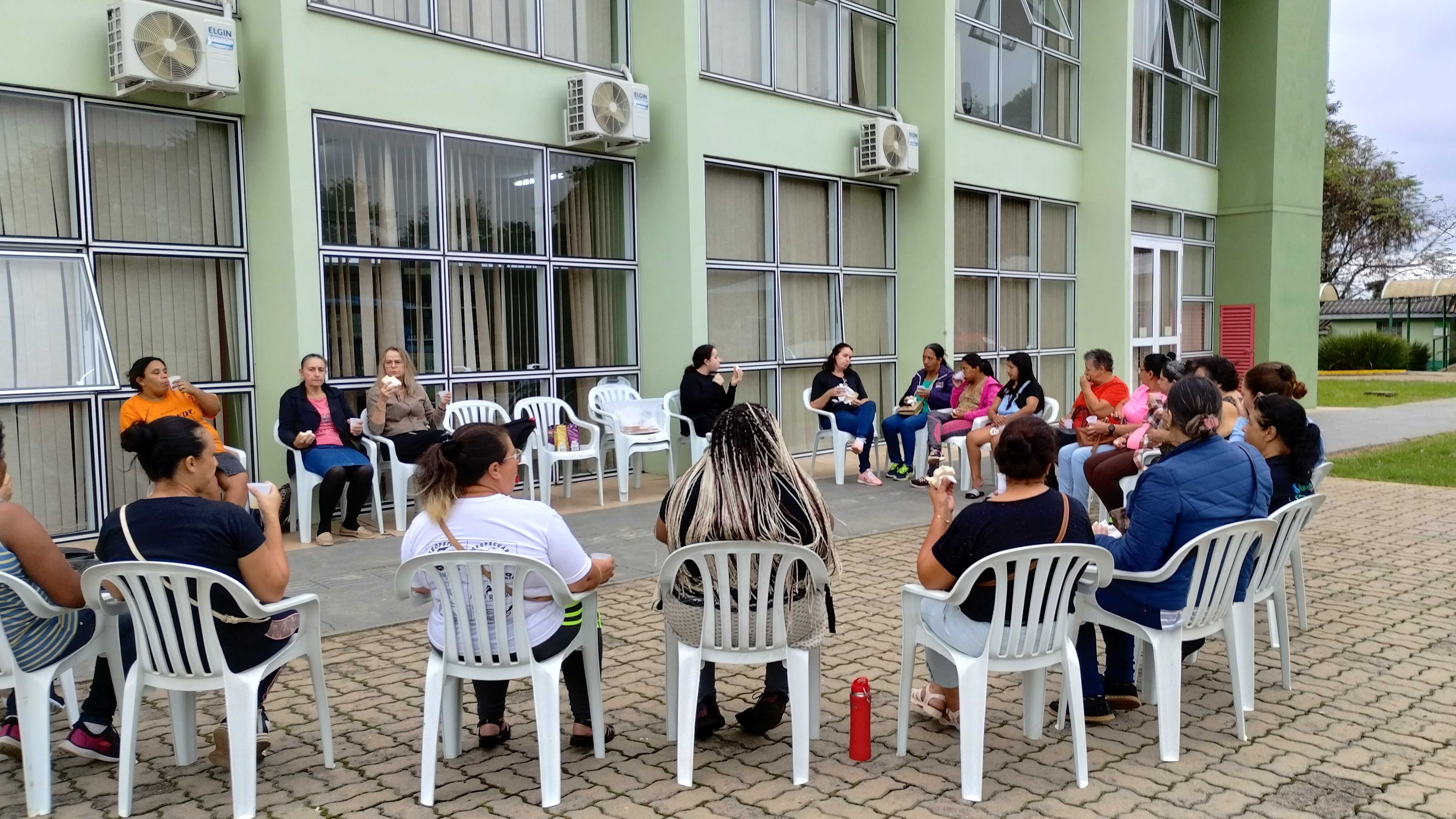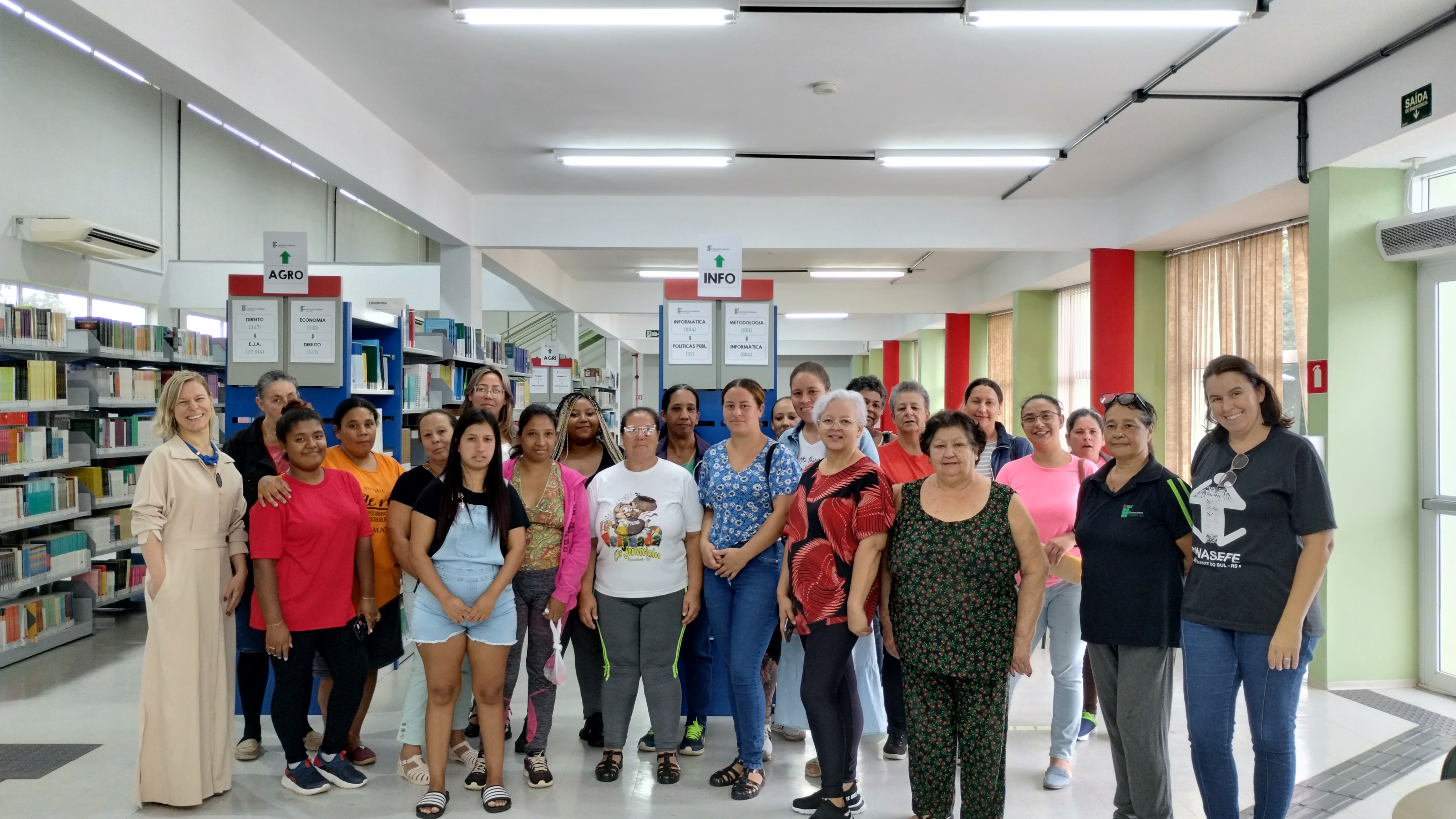 Naterça-feira passada, a professora Mariane Denardin organizou uma atividade de leitura no campus com as alunas do curso de atendente em lanchonete. As estudantes puderam conhecer a biblioteca e ao final fizeram um lanche coletivo.