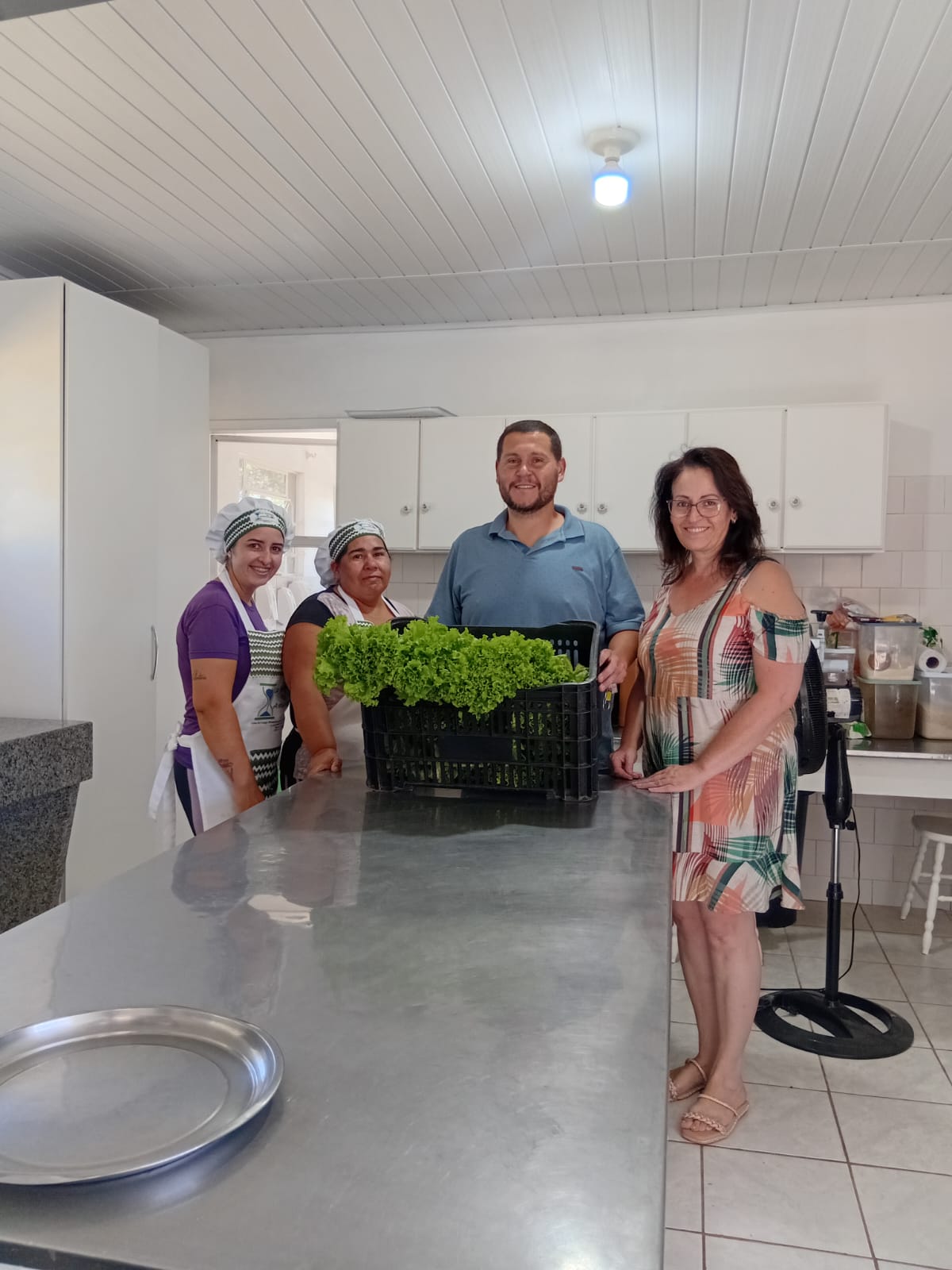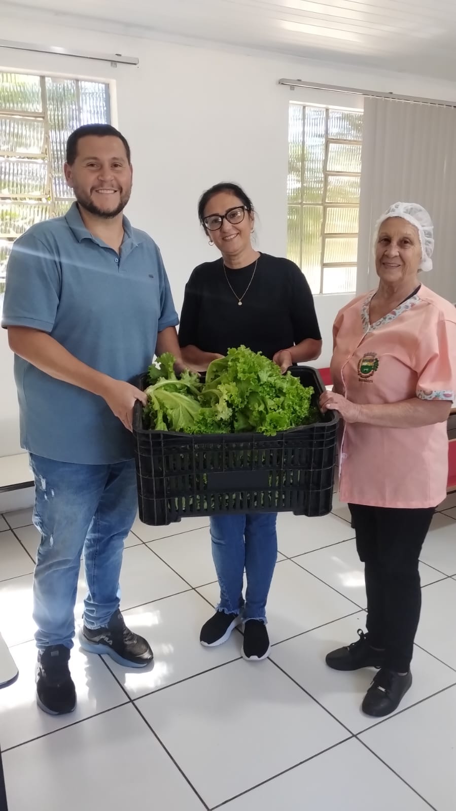 Na mesma data, o IFFar-JC, representado pela coordenadora de extensão, Raquel Padilha, e pelo técnico em Agropecuária, Rodrigo Becker, realizou a primeira entrega de alfaces produzidas no campus para a Associação Beneficente Santo Antônio (ABSA), uma instituição fundada em 1943, que tem como missão prestar atendimento a idosos, crianças e adolescentes do município. Também foram doados 10 pés de alface ao Lar Recanto do Amanhecer e a Escola de Educação Infantil Tia Marly.
