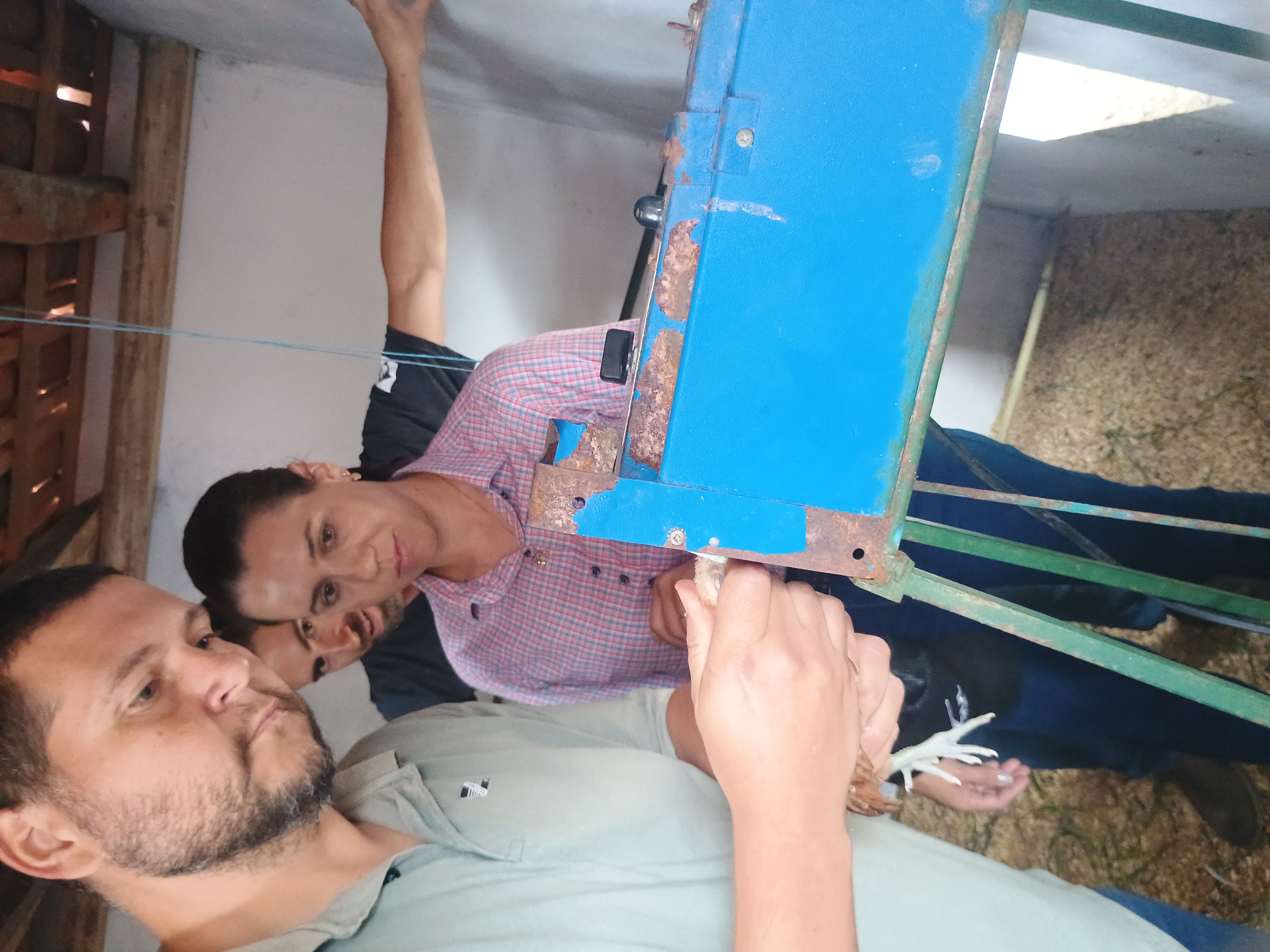 A aula prática foi ministrada pela professora Anelise Hundertmack e pelo técnico agrícola Rodrigo Becker, com a participação do proprietário Fernando Salles. A máquina de debicagem, que funciona a temperaturas entre 550 e 700 graus, foi utilizada com todos os cuidados necessários para garantir o bem-estar das aves.