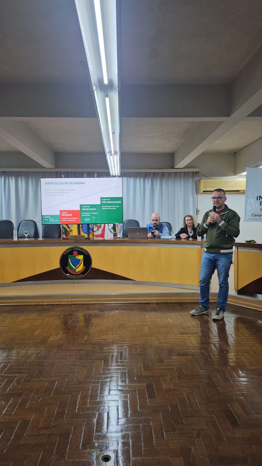 O pró-reitor começou apresentando um contexto da rede federal e do IFFar como um todo, destacando a criação de novos campi. Após Silvia falou mais sobre o contexto do Campus Júlio de Castilhos, número de estudantes, servidores/as e terceirizados/as e convidou as professoras Camila Coletto e Mariane Ugalde para fazerem apresentação dos novos cursos.