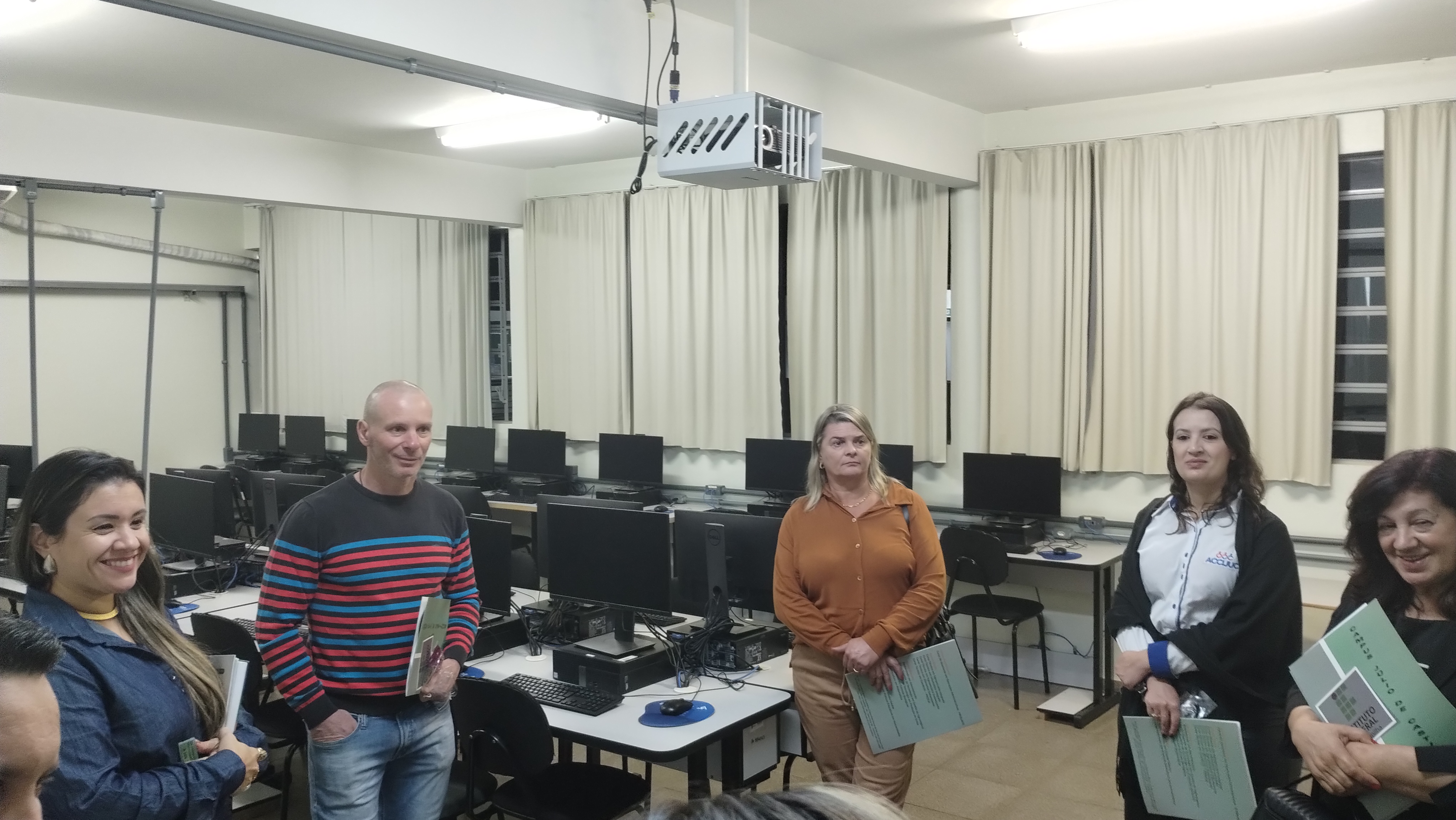 Para finalizar aconteceu uma visita guiada, que teve início na sala do Núcleo de Inovação e Transferência Tecnológica (NIT), onde foi montada uma pequena mostra do que o Labmaker. A visita seguiu pela biblioteca, eixo de produção alimentícia e um laboratório do curso de administração.
