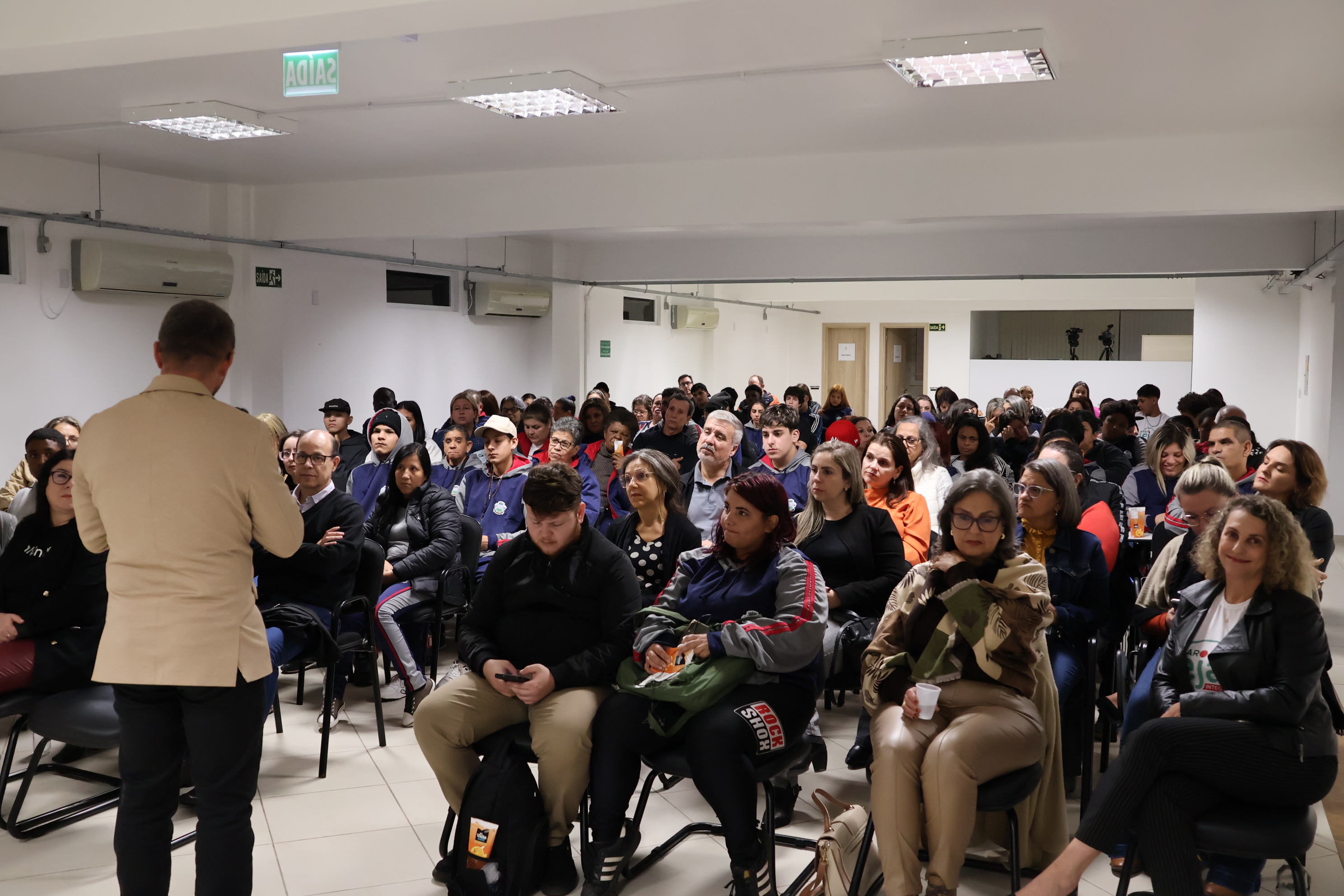 Na noite de segunda-feira, 12 de maio, o IFFar promoveu a aula inaugural no auditório da Reitoria, em Santa Maria, para marcar o início da nova etapa da Educação de Jovens e Adultos integrada à Educação Profissional e Tecnológica (EJA/EPT). A atividade reuniu estudantes, professores, servidores e representantes da prefeitura municipal.