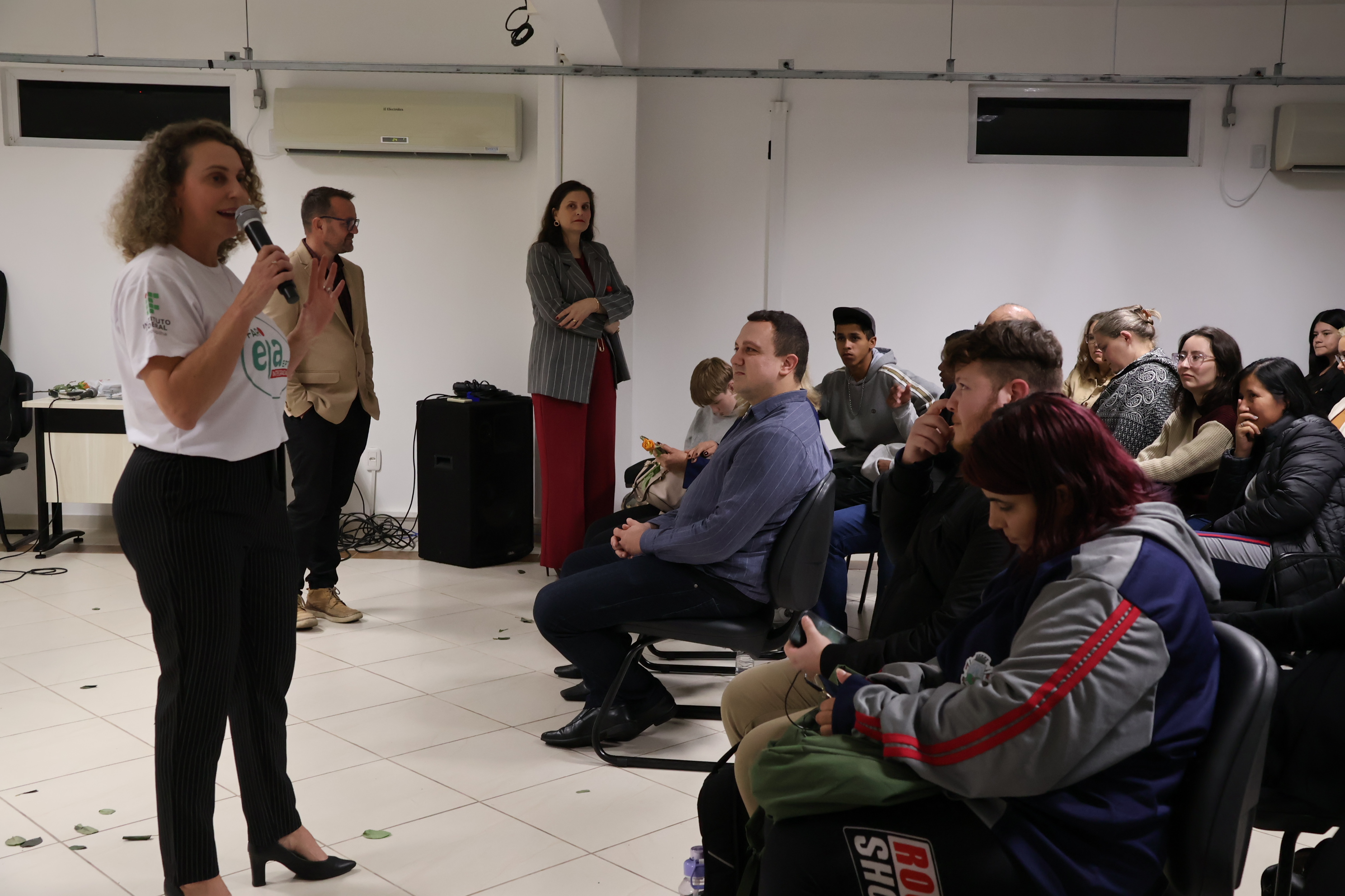 Rodrigo Carvalho Carlotto conversa com os estudantes, professores e gestores do EJA/EPT de Santa Maria
