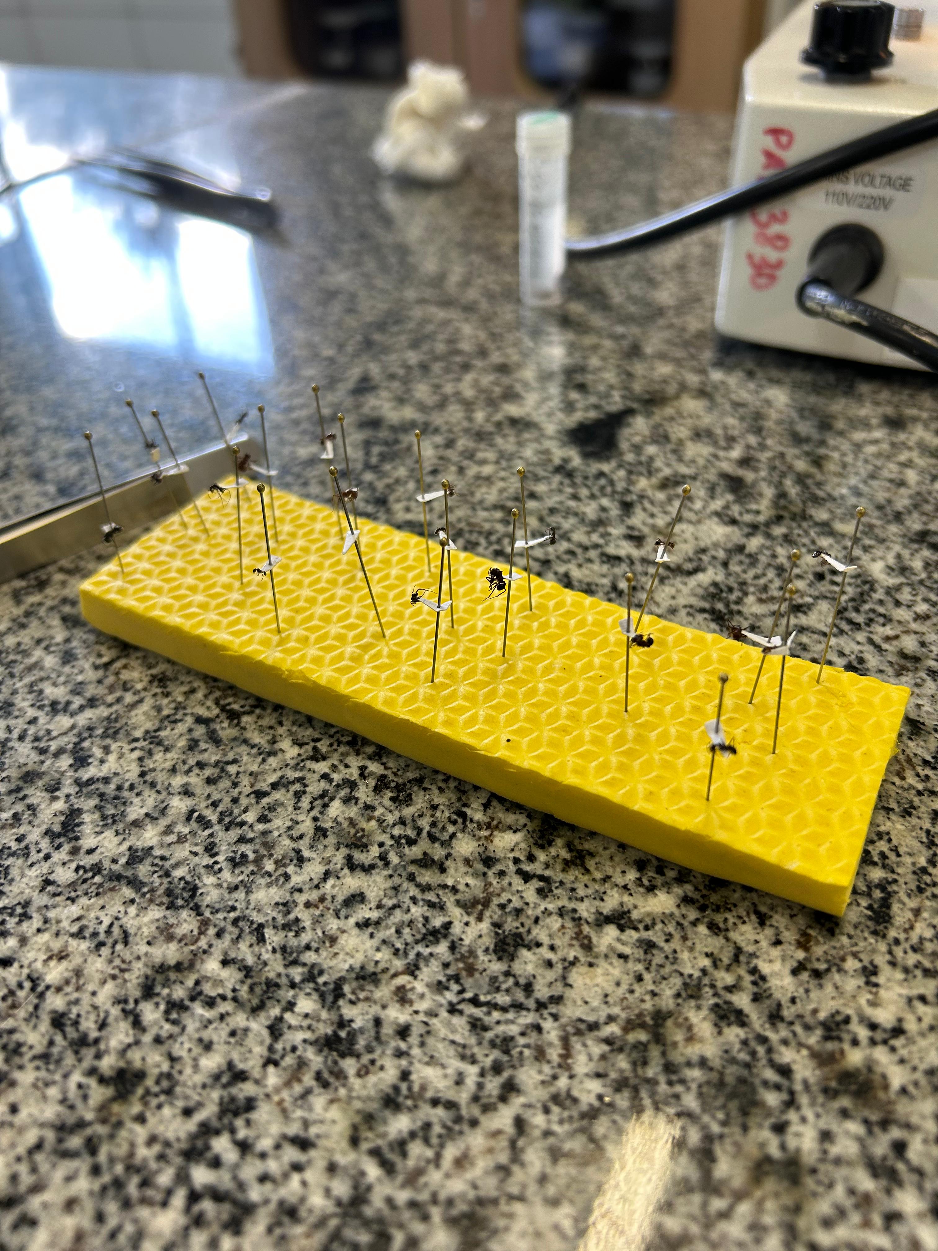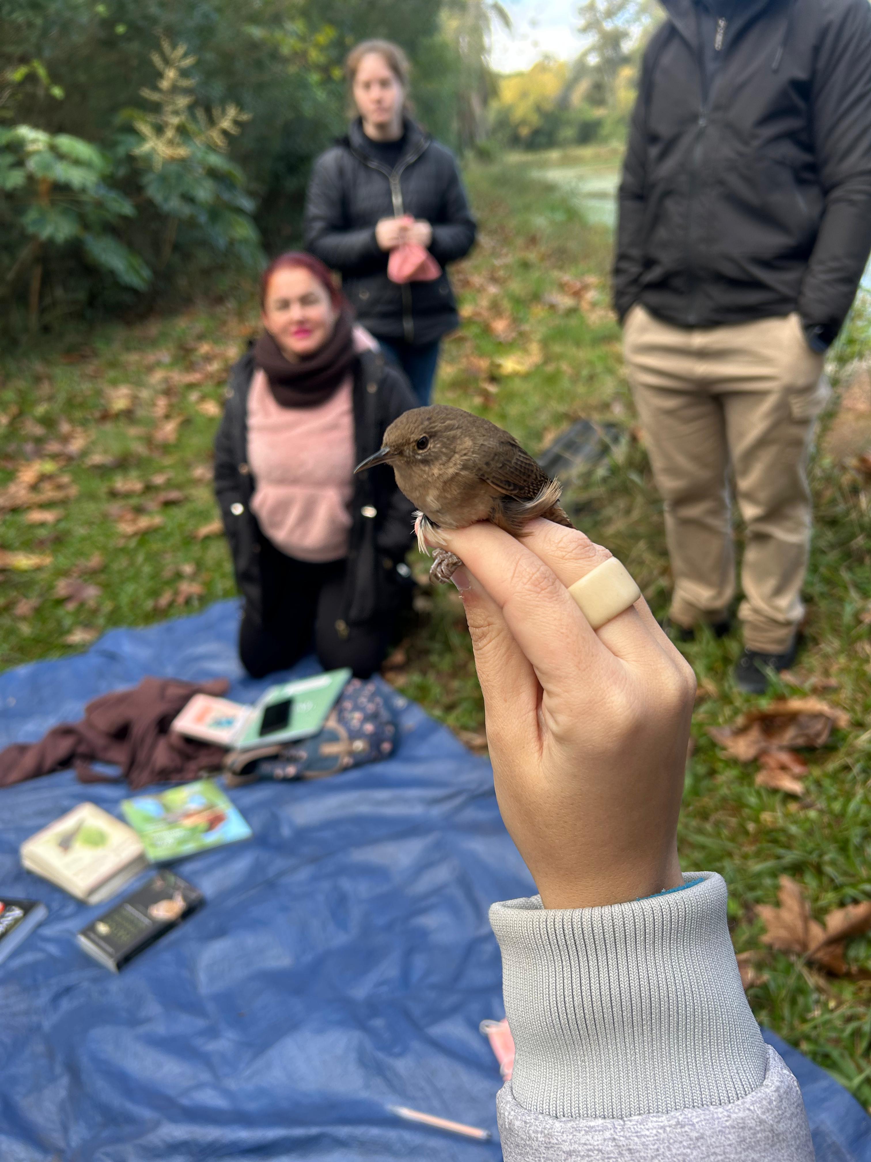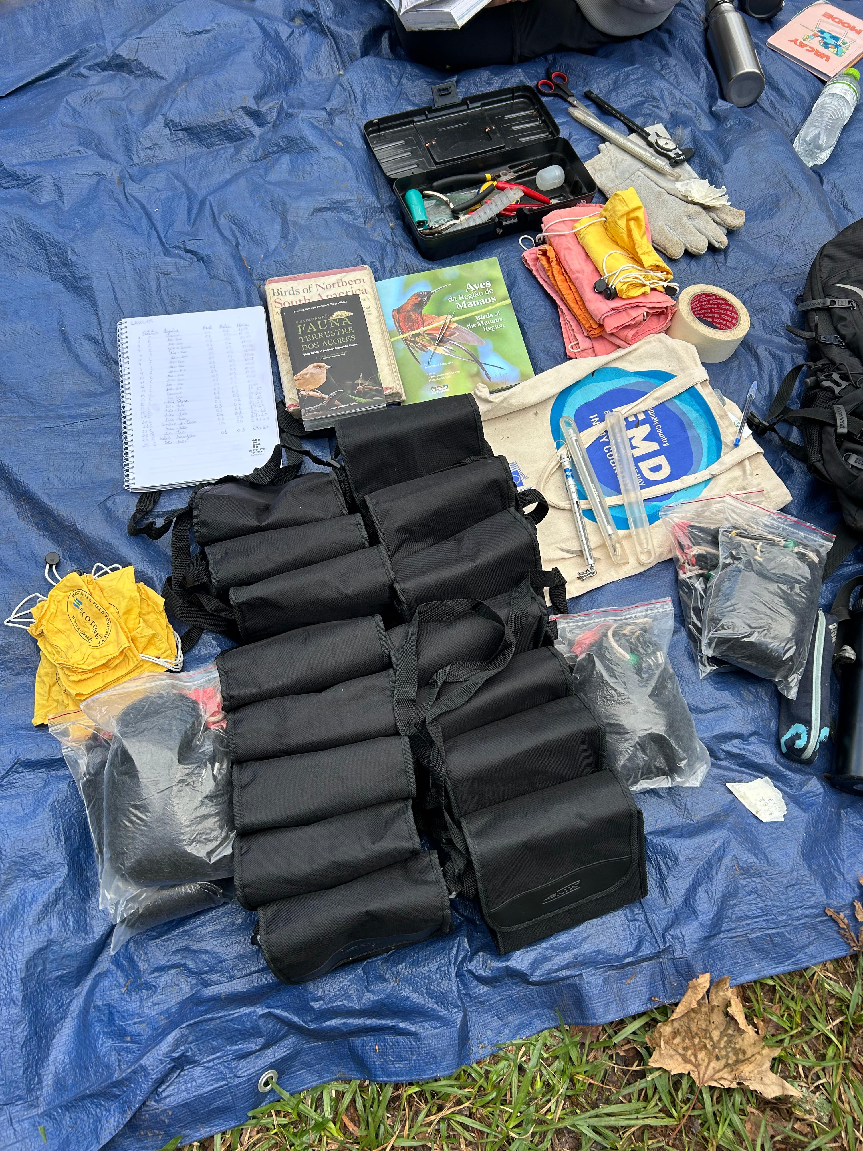 O segundo dia foi dedicado à prática: as equipes utilizaram redes de neblina para capturar aves, fizeram identificação com auxílio de guias de campo e mediram características como o comprimento da asa. As formigas foram coletadas com armadilhas de queda (pitfalls) e extratores de Winkler. Ambas as práticas foram feitas em dois ambientes distintos – uma área de lavoura e uma área arborizada no Parque Florestal do campus – permitindo a comparação entre diferentes contextos ecológicos.