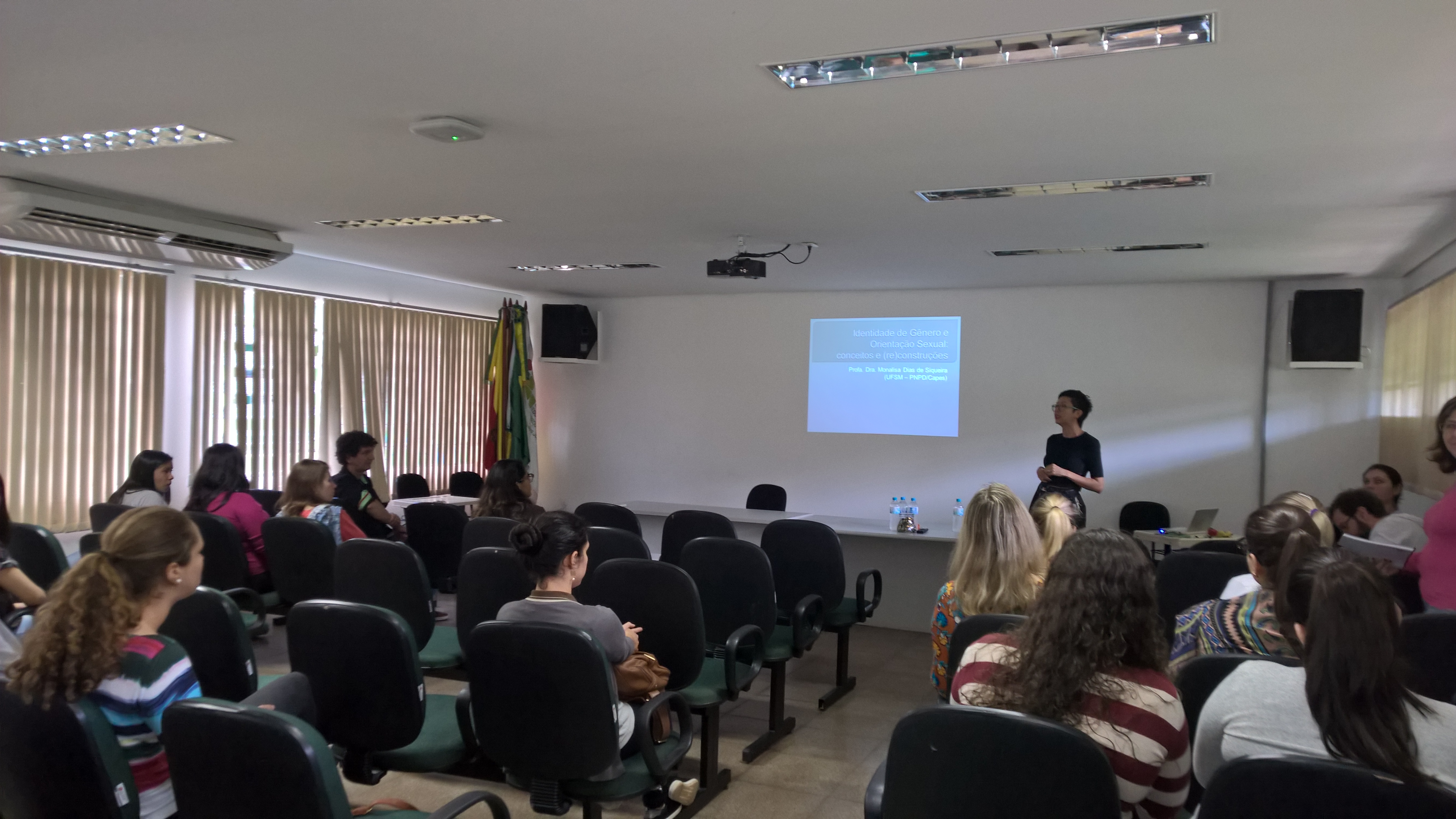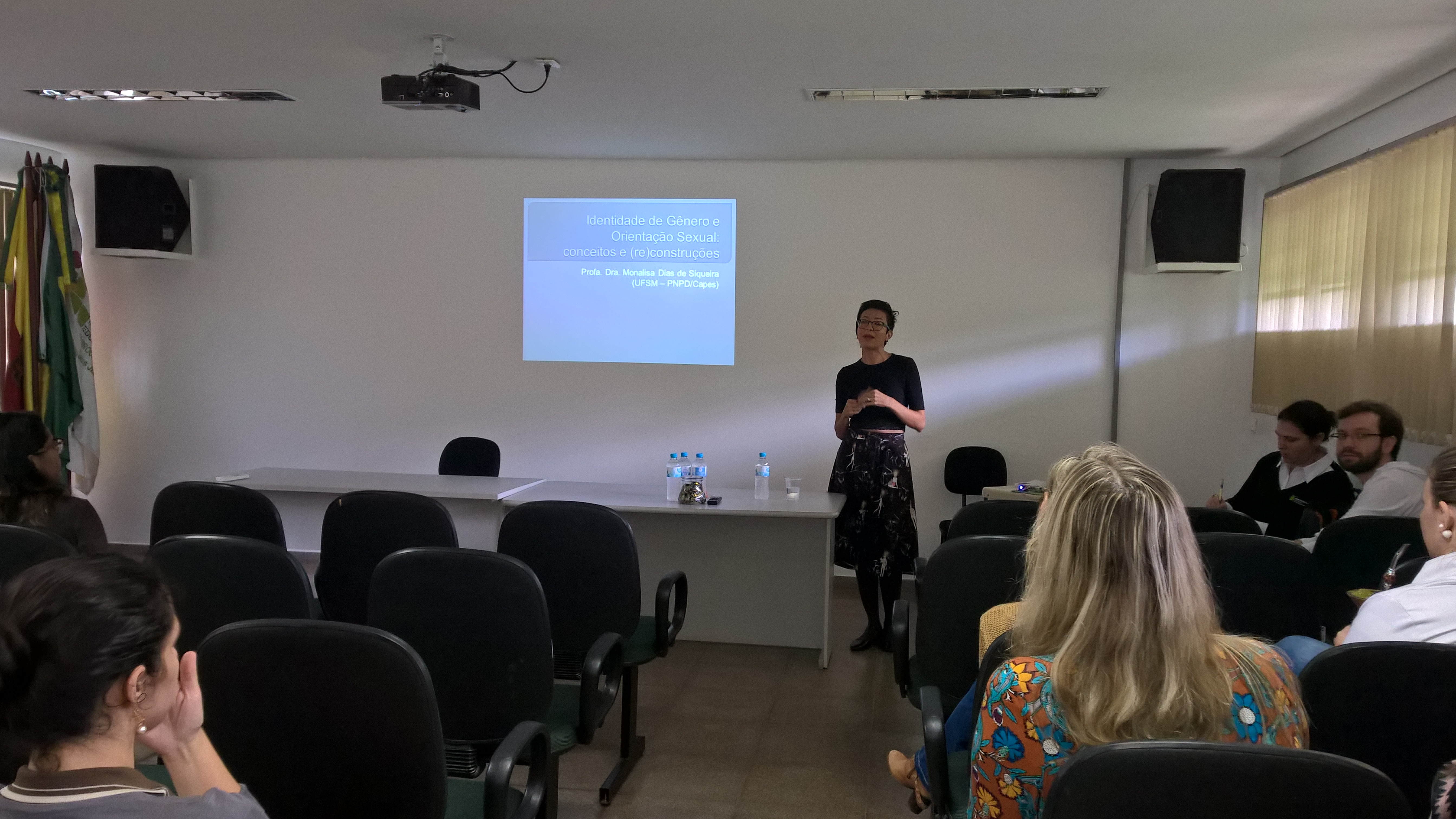 Durante sua fala sob o tema “ Identidade de gênero e orientação sexual: conceitos e (re)construções”, Monalisa destacou a mudança na sociedade nos últimos 30, 40 anos, colocou que como as influências sociais não são totalmente visíveis, parece para nós que as diferenças entre homens mulheres são naturais, totalmente biológicas, quando, na verdade, boa parte delas é influenciada pelo convívio social. Sua fala se estendeu por mais de duas horas e esclareceu várias dúvidas, inclusive de alunos da Licenciatura de como falar sobre esse tema na sala de aula.
