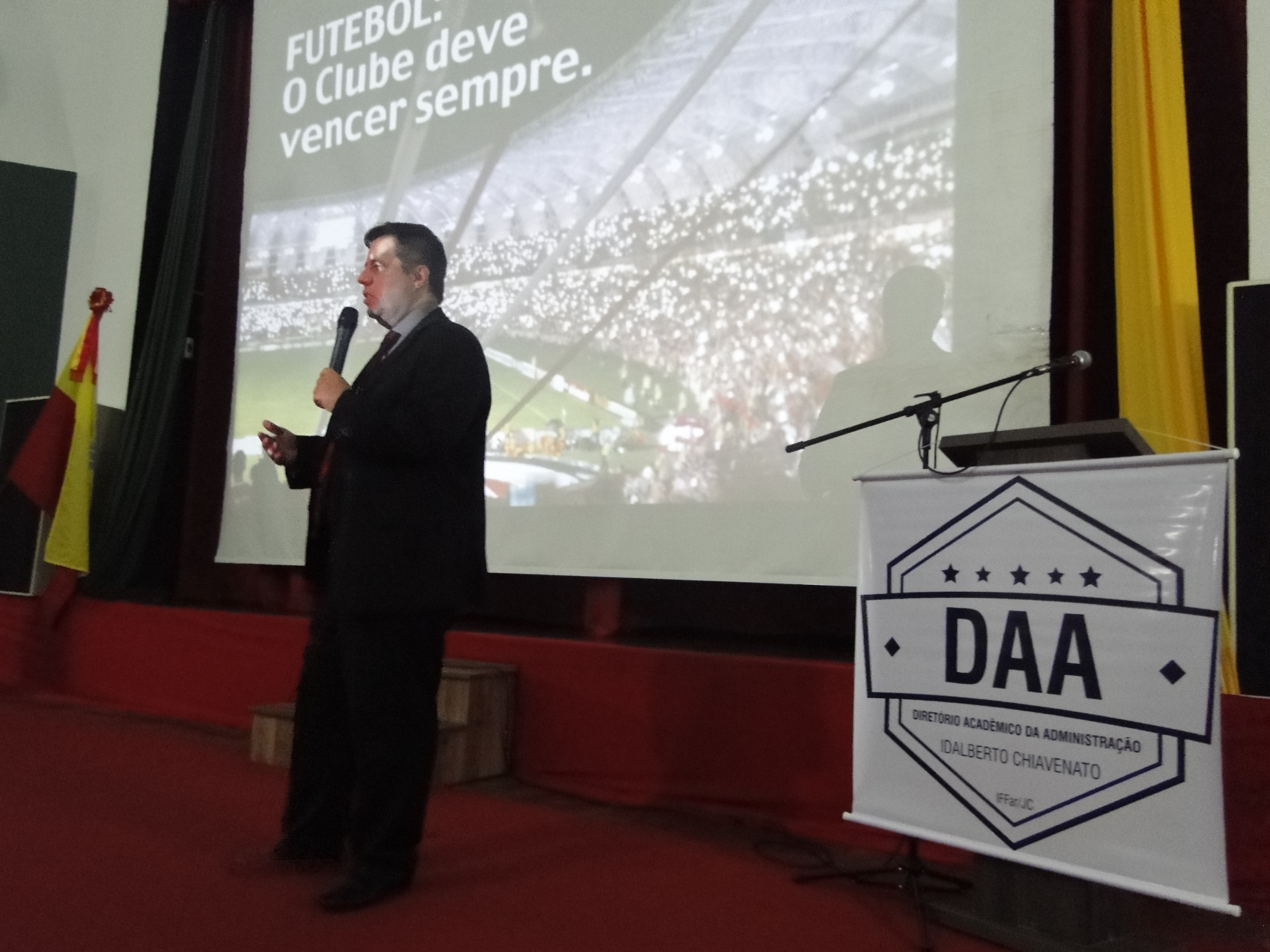 A palestra da noite foi com o consultor da Federação Gaúcha de Futebol na área de comunicação e relacionamento com o torcedor, Alexandre Limeira, que falou sobre "Futebol, o time deve vencer sempre" . Destacou a importância do planejamento e da eficiência do marketing.