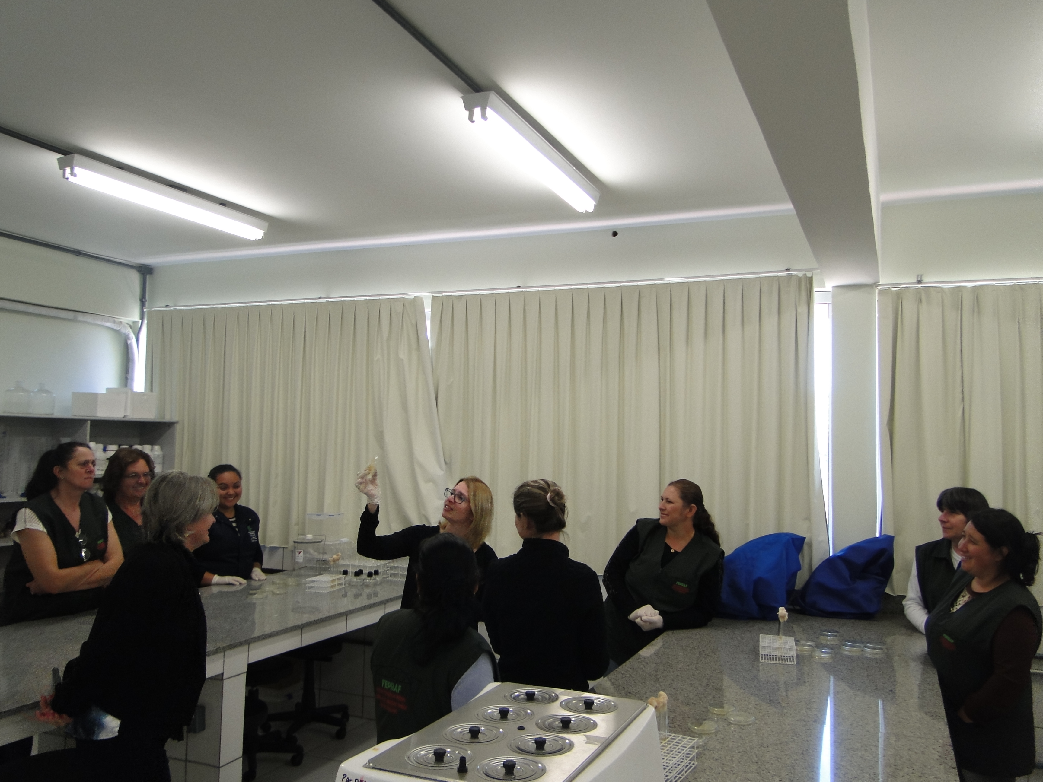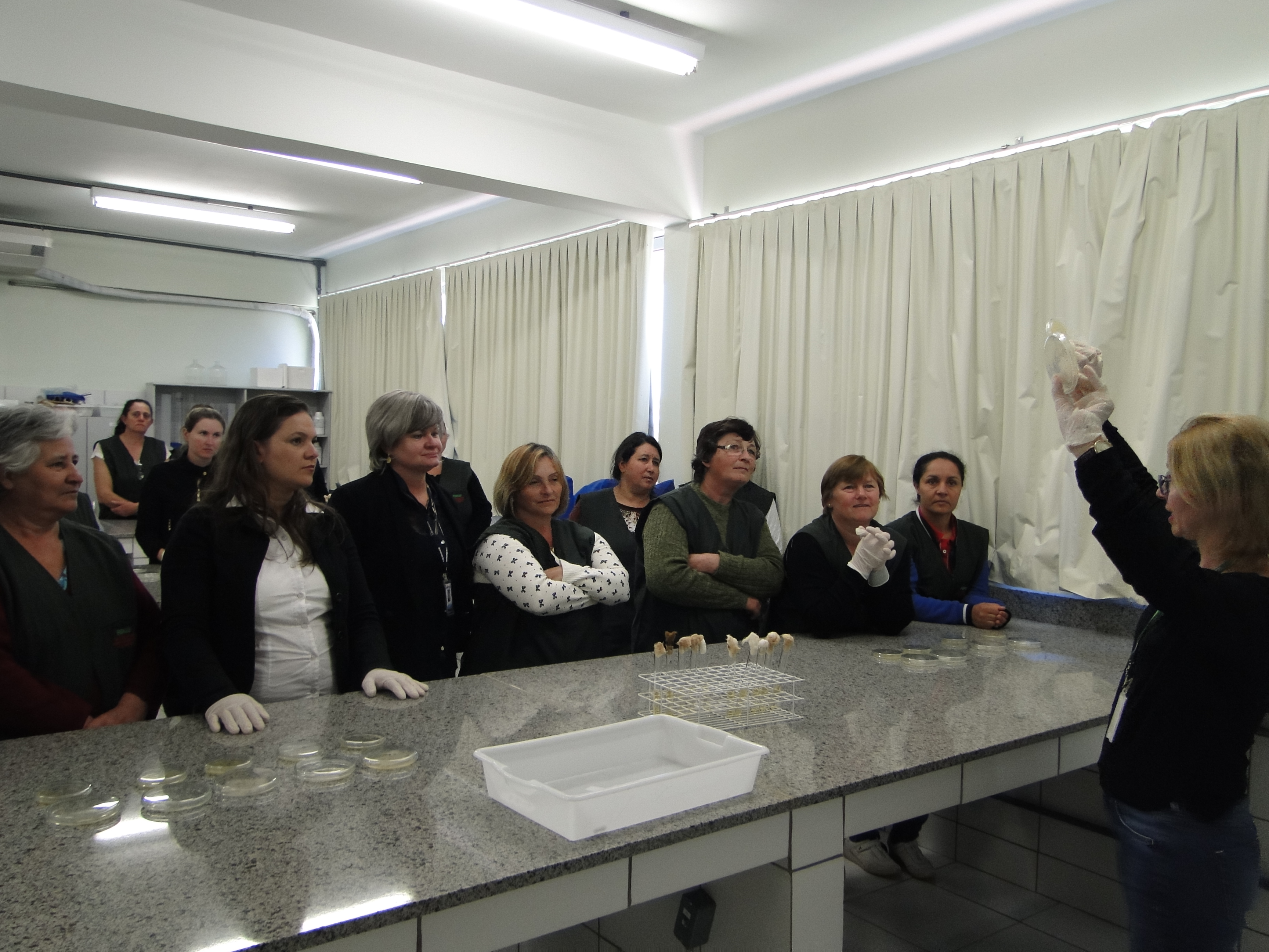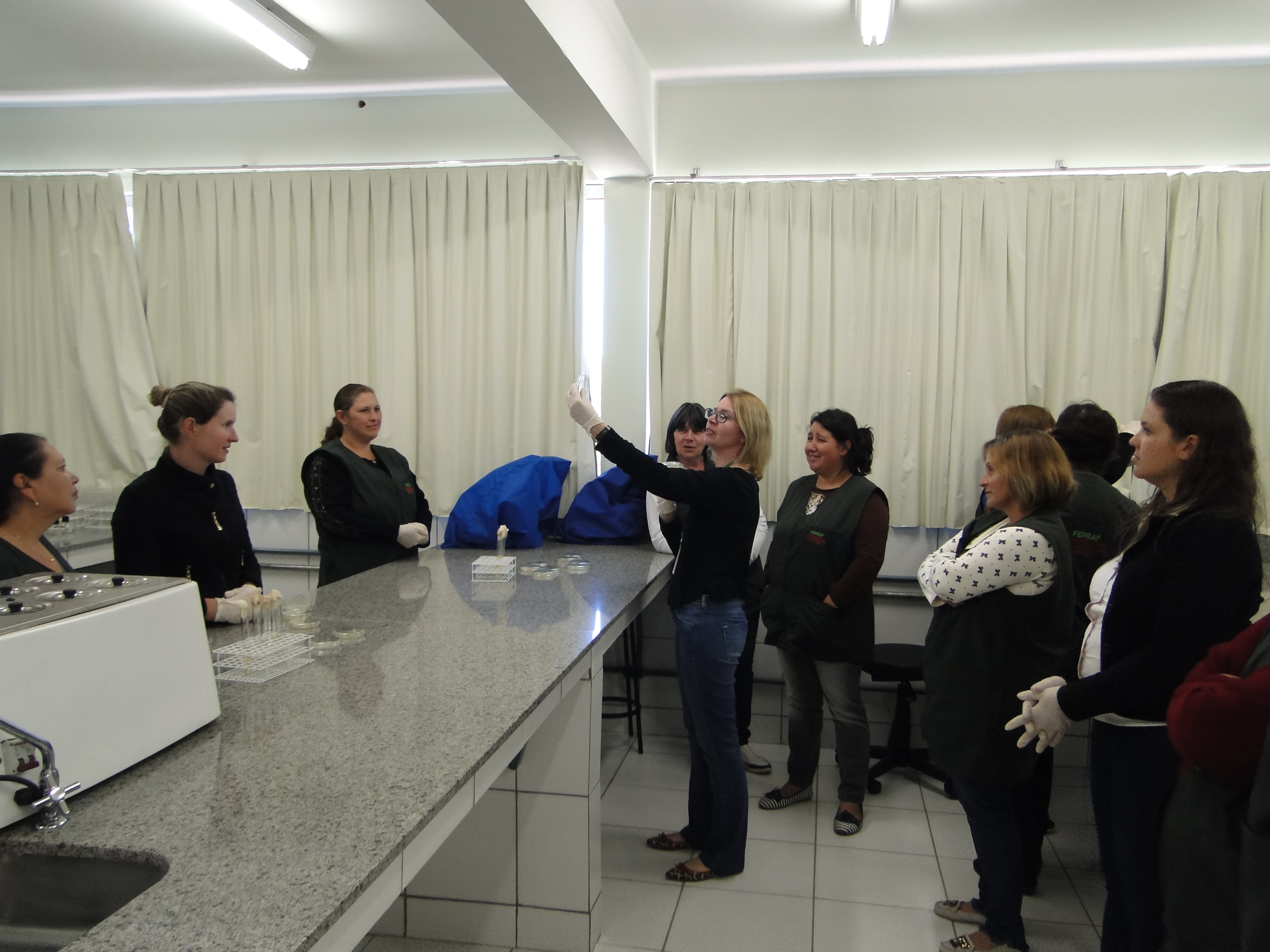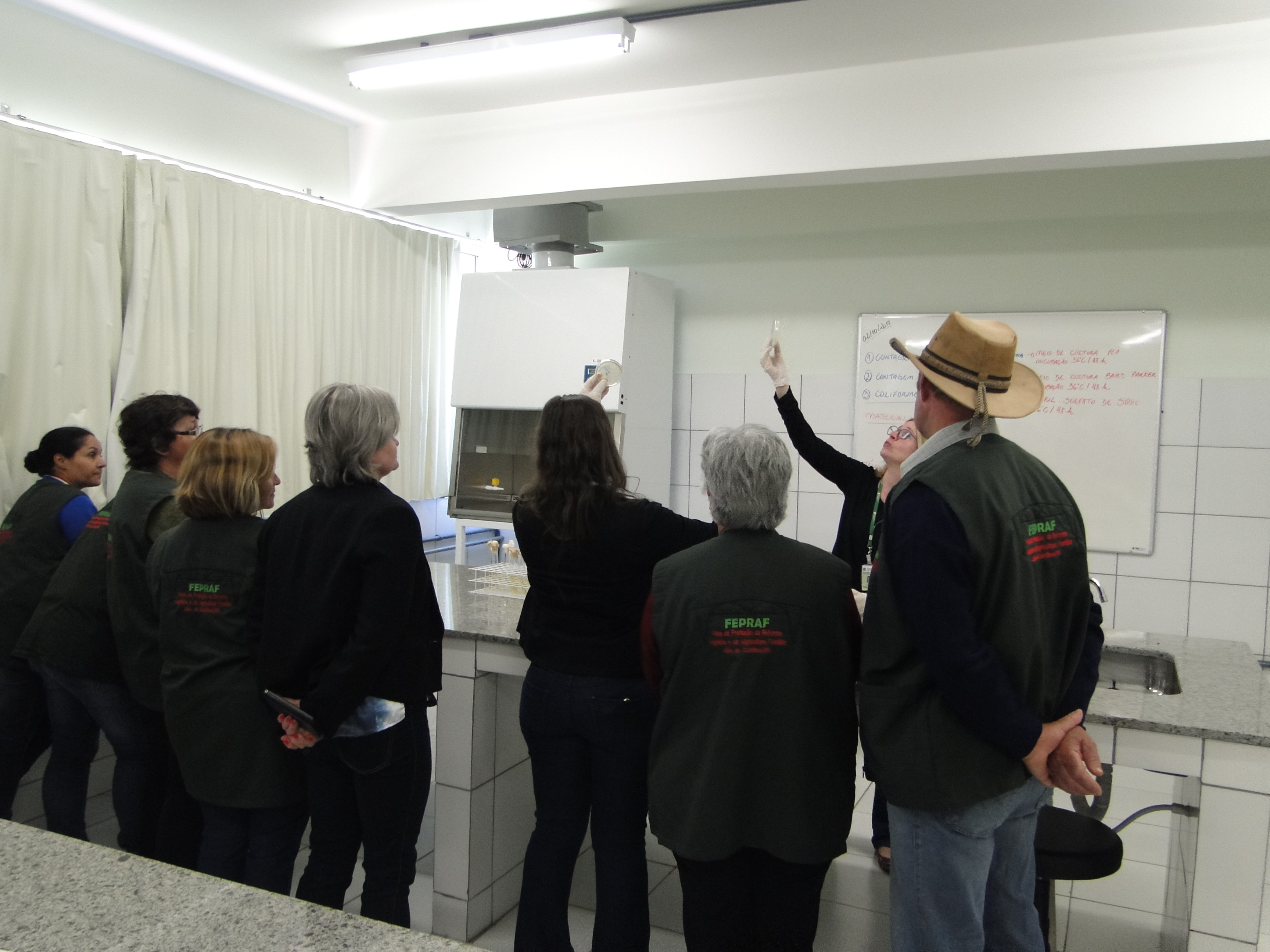 Na última semana, de de 21 a 23 de novembro o Eixo de Produção Alimentícia promoveu Capacitação em Boas Práticas de Manipulação em Serviços de Alimentação. Os feirantes que participam da FEPRAF (Feira da Produção da Reforma Agrária e da Agricultura familar), de Júlio de Castilhos receberam orientações teórico-práticas sobre higiêne na manipulação de alimentos. A formação foi ministrada pelos professores mariane Lobo Ugalde, Valmor Ziegler e pela nutricionista do Campus, Fernanda Miranda Conterato.