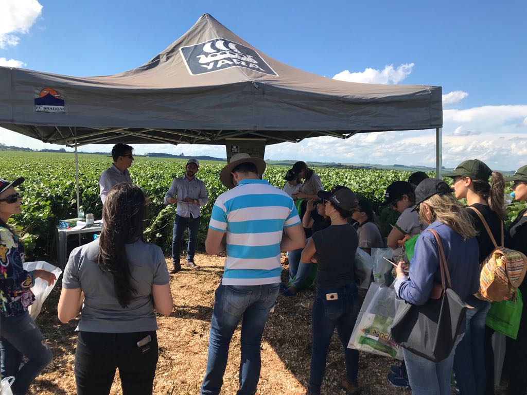 Na tarde do dia 23/02, estudantes e servidores do Campus Júlio de Castilhos participaram de uma tarde de troca de experiências a campo, na Fazenda Santo Antão, em Júlio de Castilhos. Na oportunidade, foram apresentadas uma serie de novidades do setor, com ênfase em Nutrição de plantas, lançamento de Cultivares de soja e Fotointerpretacao de imagens aéreas, distribuídas em estações demonstrativas: calcário para correção da acidez do solo; programas de nutrição inteligente de plantas; fertilizantes sólidos e líquidos; proteção biológica de cultivos agrícolas; e, tecnologia de monitoramento aéreo com aeronaves não tripuladas.