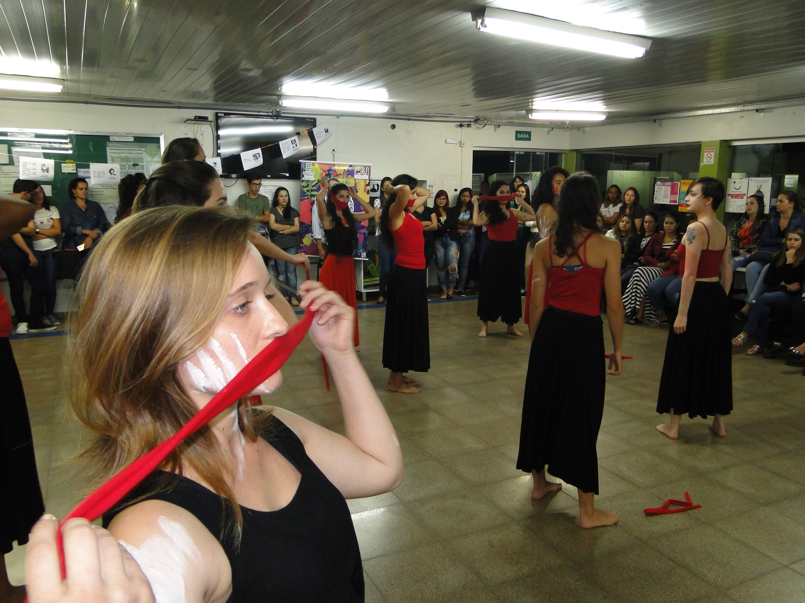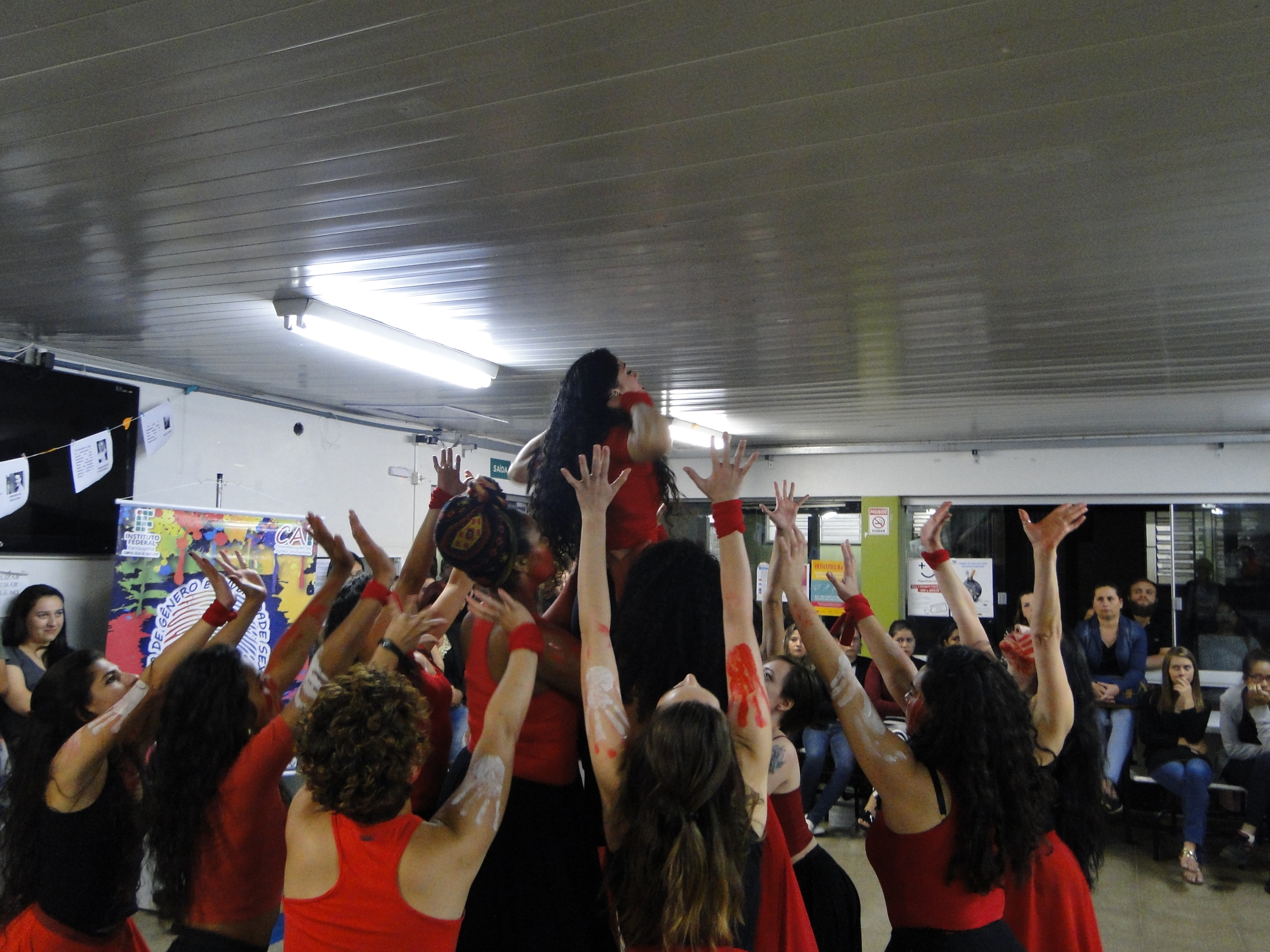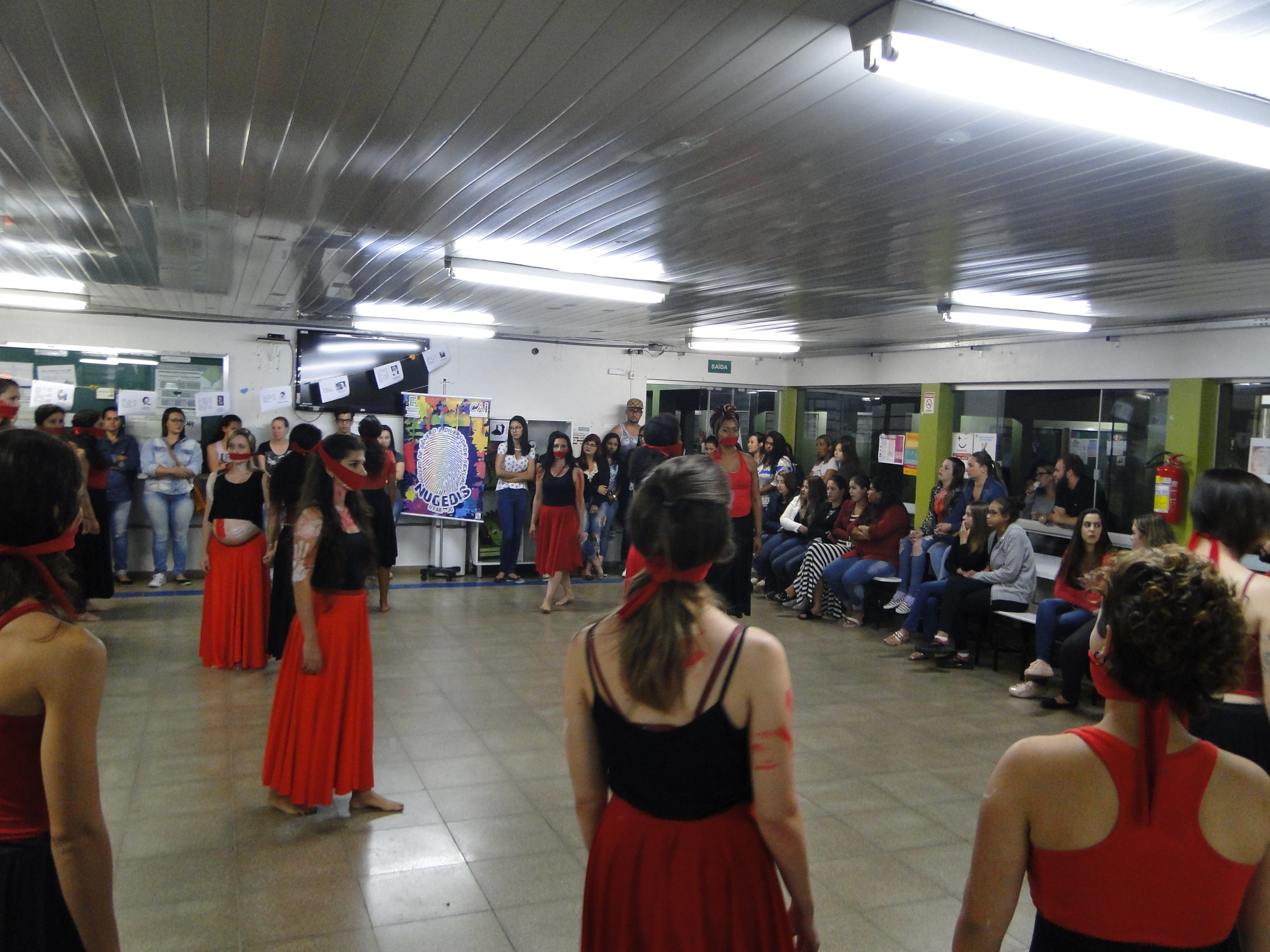 A noite foi apresentada a intervenção do Grupo de Mulheres Amor, Movimento e Dança para as estudantes dos cursos superiores mostrando que a dança é possível a todos os corpos, sobretudo, às mulheres que ainda não têm acesso aos espaços de criação artística e limitam-se apenas à contemplação destas manifestações culturais. Os movimentos das bailarinas levam à reflexão acerca do protagonismo da mulher nesses espaços, sobretudo são uma das formas de luta e empoderamento frente às inúmeras situações de assédio, violência e opressão.