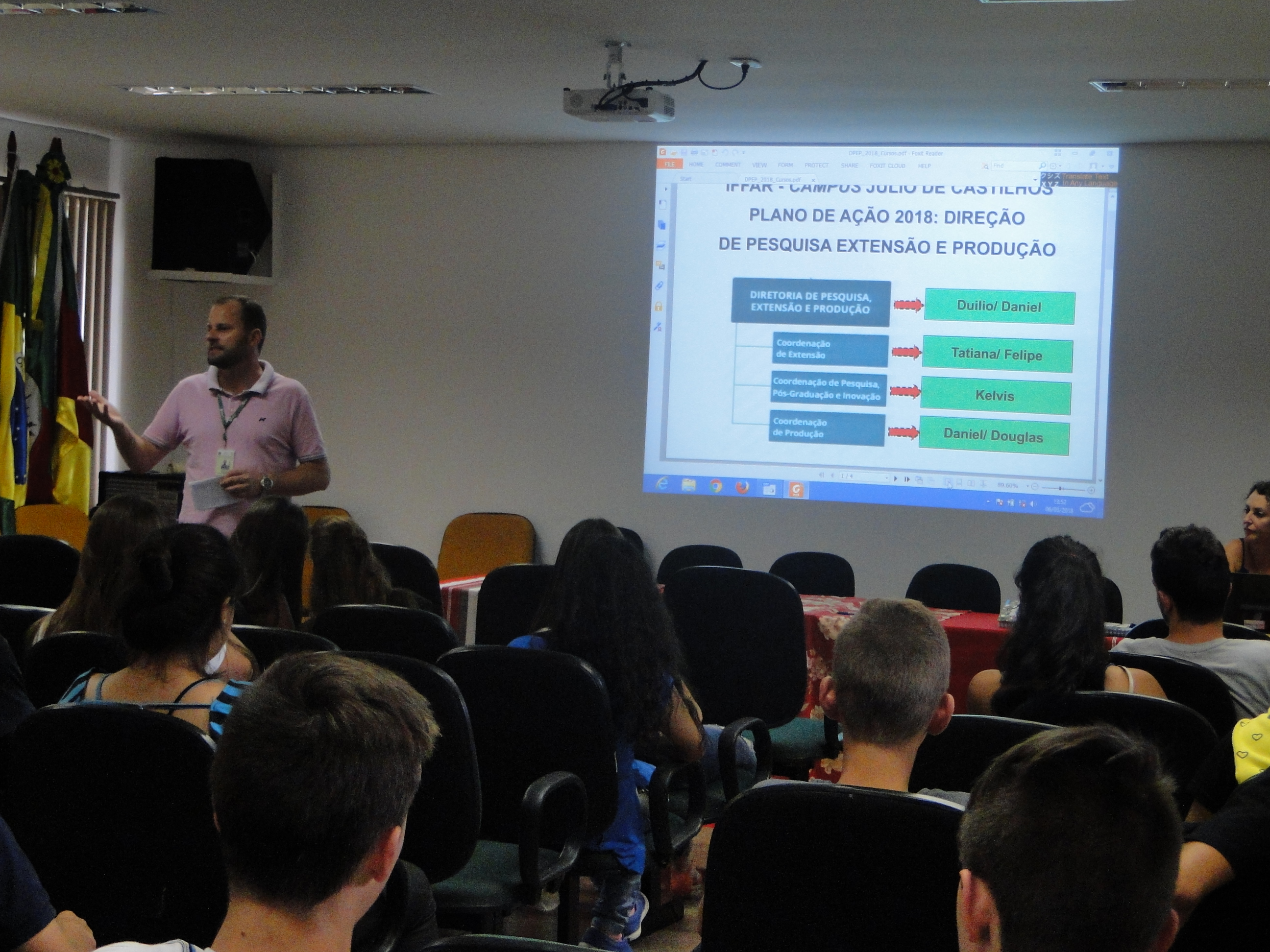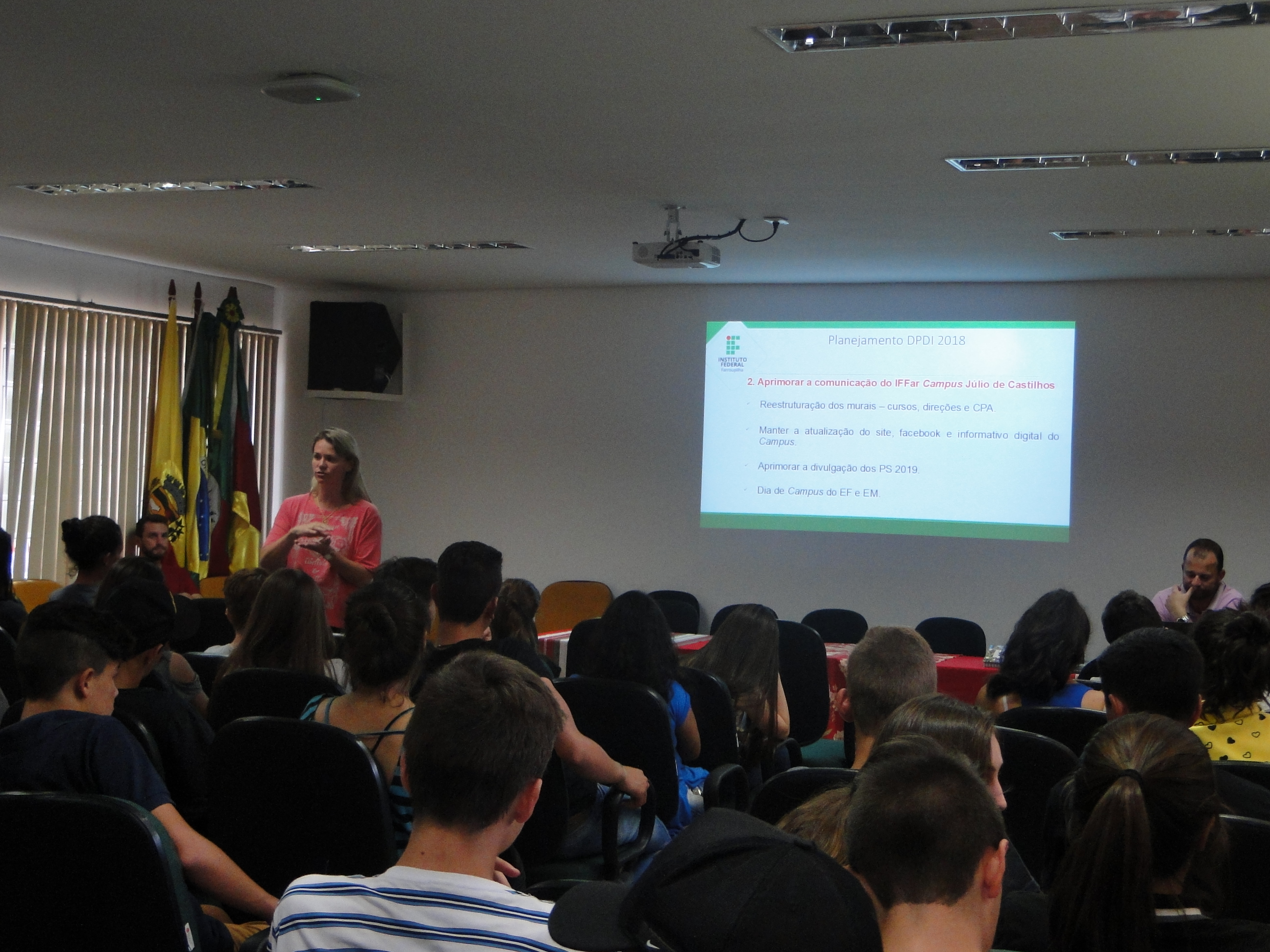 As especificidades do Campus Júlio de Castilhos, as dimensões do funcionamento da estrutura organizacional, alocação de recursos, dinâmicas dos projetos de ensino, pesquisa e extensão, políticas da Assistência Estudantil foram alguns dos temas do Programa de Recepção dos Estudantes 2018. As atividades propostas pela Direção Geral do Campus foram concluídas ontem (15) e contemplaram, durante uma semana todos os cursos dos níveis médio integrado, médio subsequente e superiores. Esse programa tem a finalidade de mostrar aos estudantes os mecanismos que estão por detrás das ações cotidianas do Campus. Na oportunidade foi apresentado pela DPDI, as ações propostas para a construção do novo Plano de Desenvolvimento Institucional PDI 2019-2026 do Iffar e destacada a importância da participação efetiva dos estudantes.
