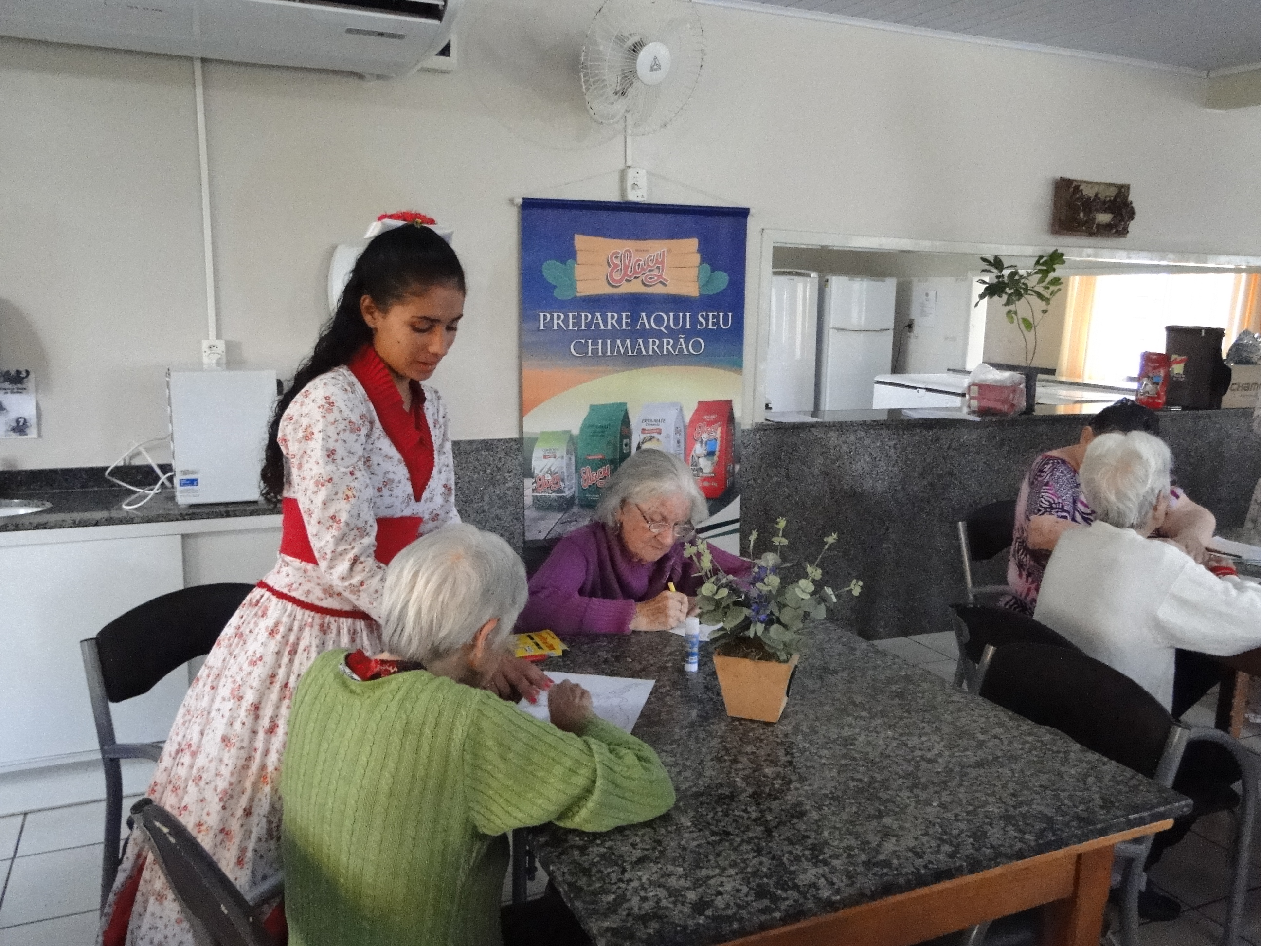 Essa ação teve o apoio e participação da ervateira Elacy, que colaborou com a doação de erva mate para o Lar Recanto do Amanhecer e brindes para sorteio entre os vovozinhos.