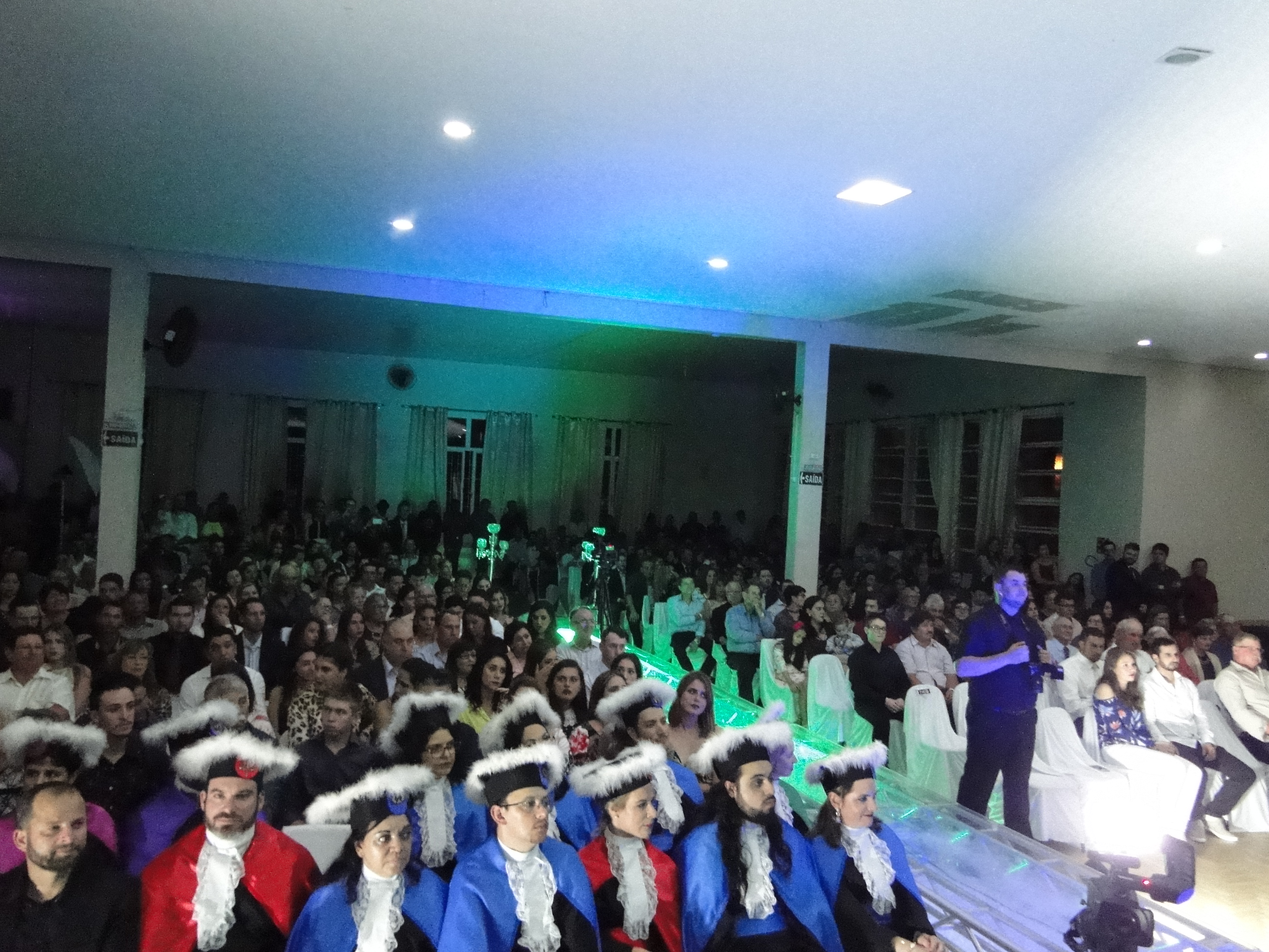 Na sexta-feira (20) aconteceu a solenidade de conclusão dos Cursos Superiores de Bacharelado em Administração, Licenciaturas em Ciências Biológicas e Matemática e Tecnologia em Gestão do Agronegócio do Campus Júlio de Catilhos. O evento ocorreu no Clube União Esportivo e Recreativo e contou com a presença do representante da Reitora, Pró Reitor de Administração Vanderlei José Pettenon, o Diretor Geral do Campus Rodrigo Carvalho Carlotto, além dos diretores, coordenadores, patronos e paraninfos.