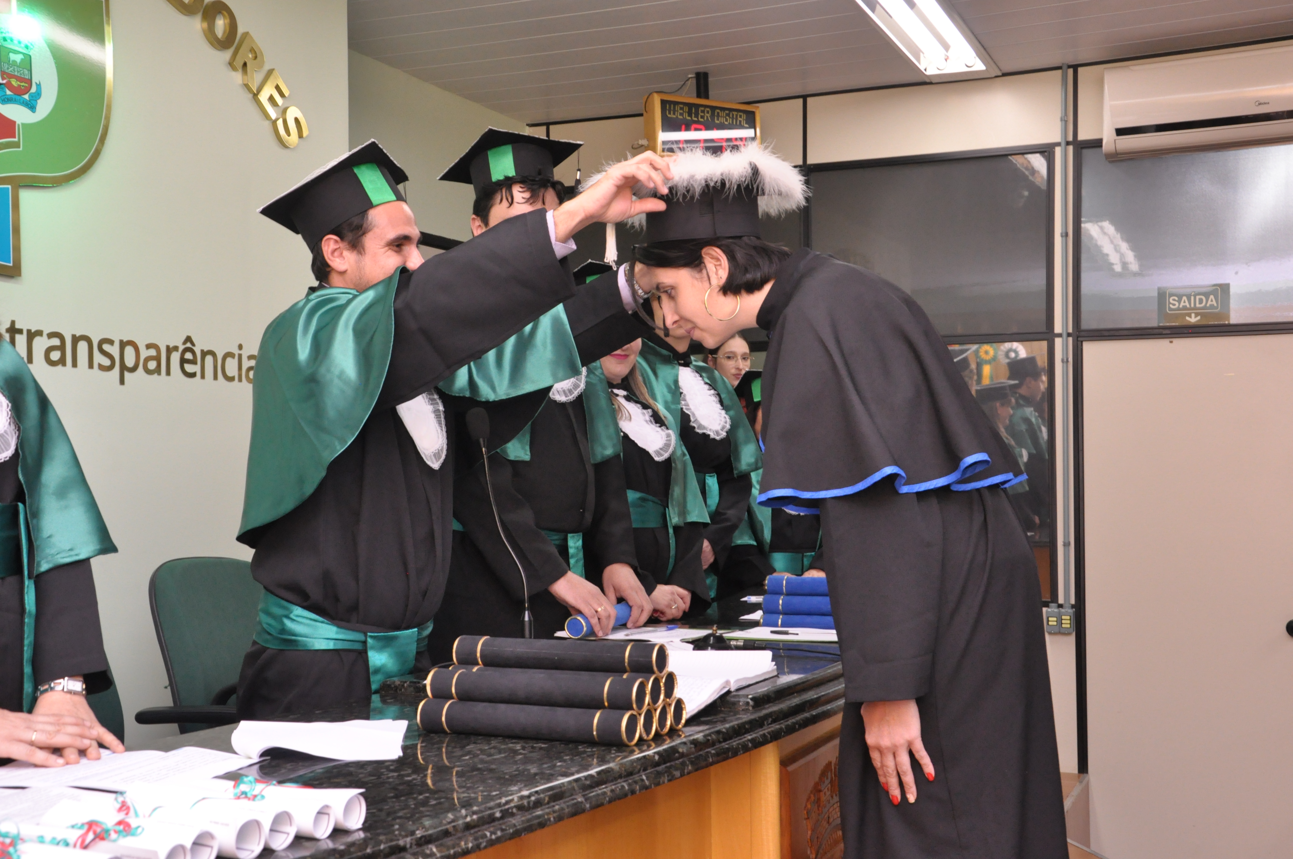 Com a presença do Coordenador do Curso de Educação a Distância do Campus Panambi, Magnos Roberto Pizzoni, e do Coordenador do Curso Técnico em Secretariado EaD, Thiago Weingartner, os concluintes receberam o certificado de conclusão do curso na presença de autoridades locais, professores e tutores do curso, além de convidados em geral.