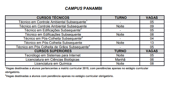 Vagas para transferências, reingresso e ingresso em cursos técnicos e superiores do IFFar Campus Panambi