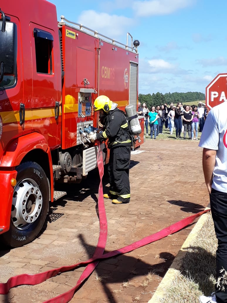 O curso “estratégias educativas e preventivas para tomada de providências emergenciais em situações de risco em uma instituição de ensino”, ofertado a servidores do IFFar – Campus Panambi e promovido por integrantes do 12º Batalhão de Bombeiro Militar, encerrou com uma atividade prática.