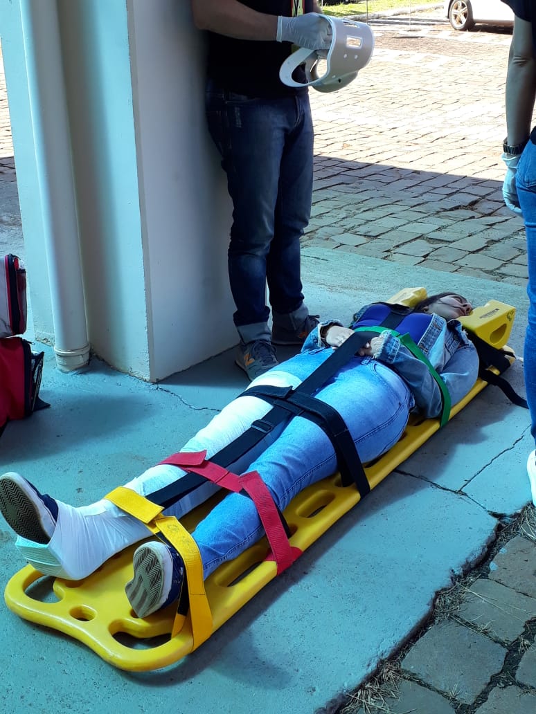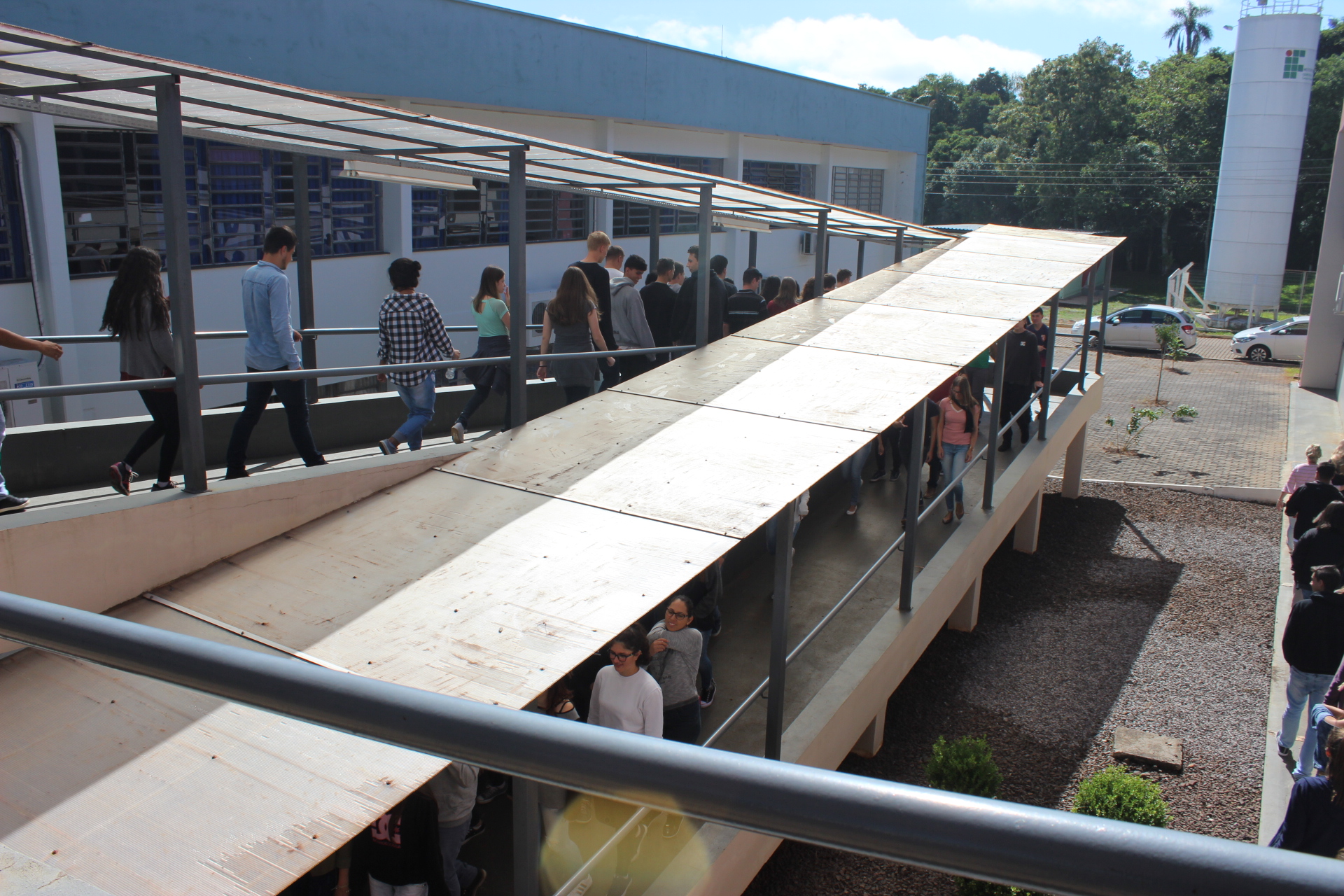 Na manhã de 27/02 foi simulada a evacuação dos espaços do IFFar em decorrência de dois acidentes: um incêndio no banheiro masculino do prédio A e um curto-circuito, com vítima eletrocutada, no auditório. Ao total, na simulação do acidente havia três vítimas: uma aluna eletrocutada, uma pessoa com parada respiratória e outra pessoa com fratura na perna.
