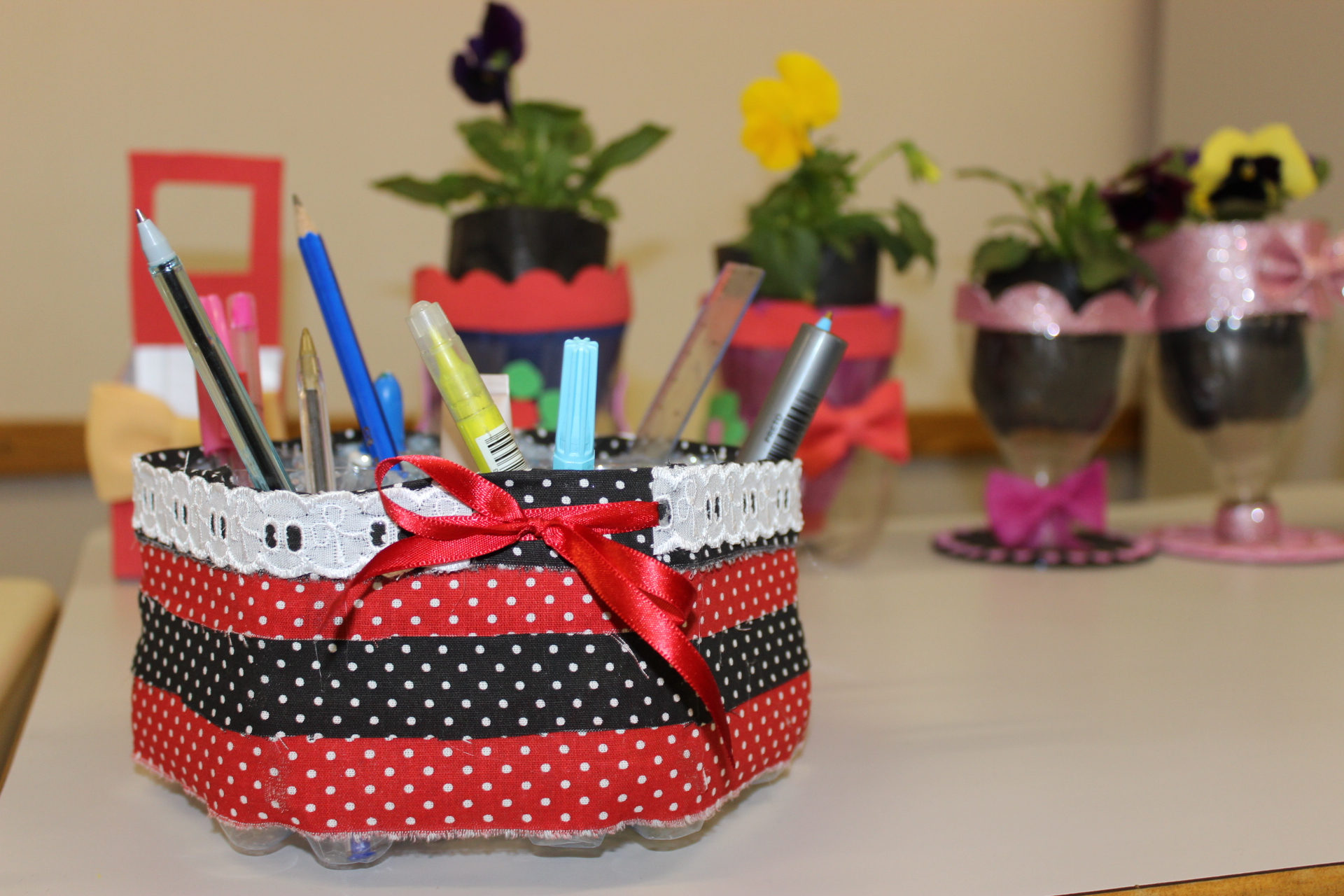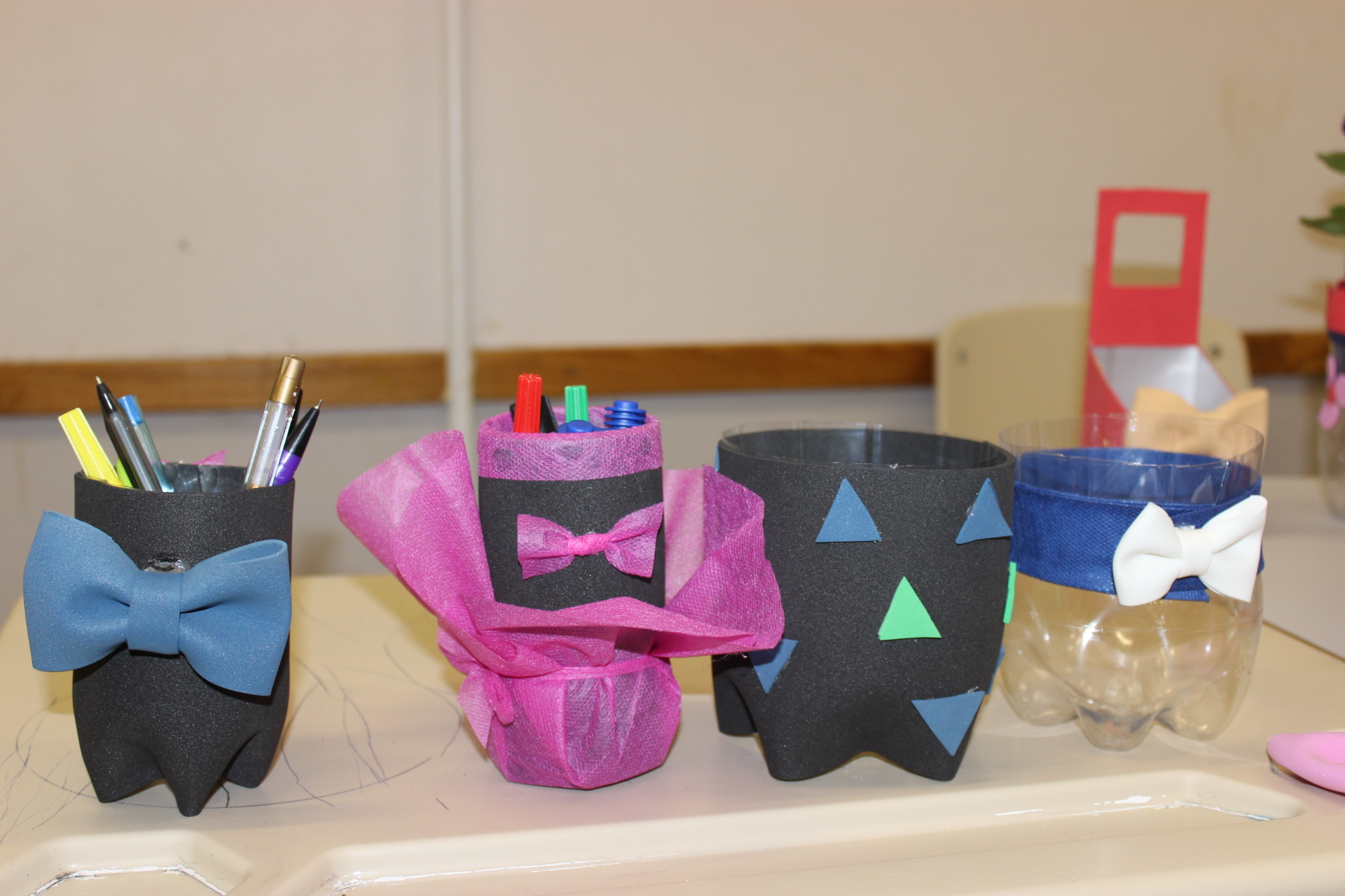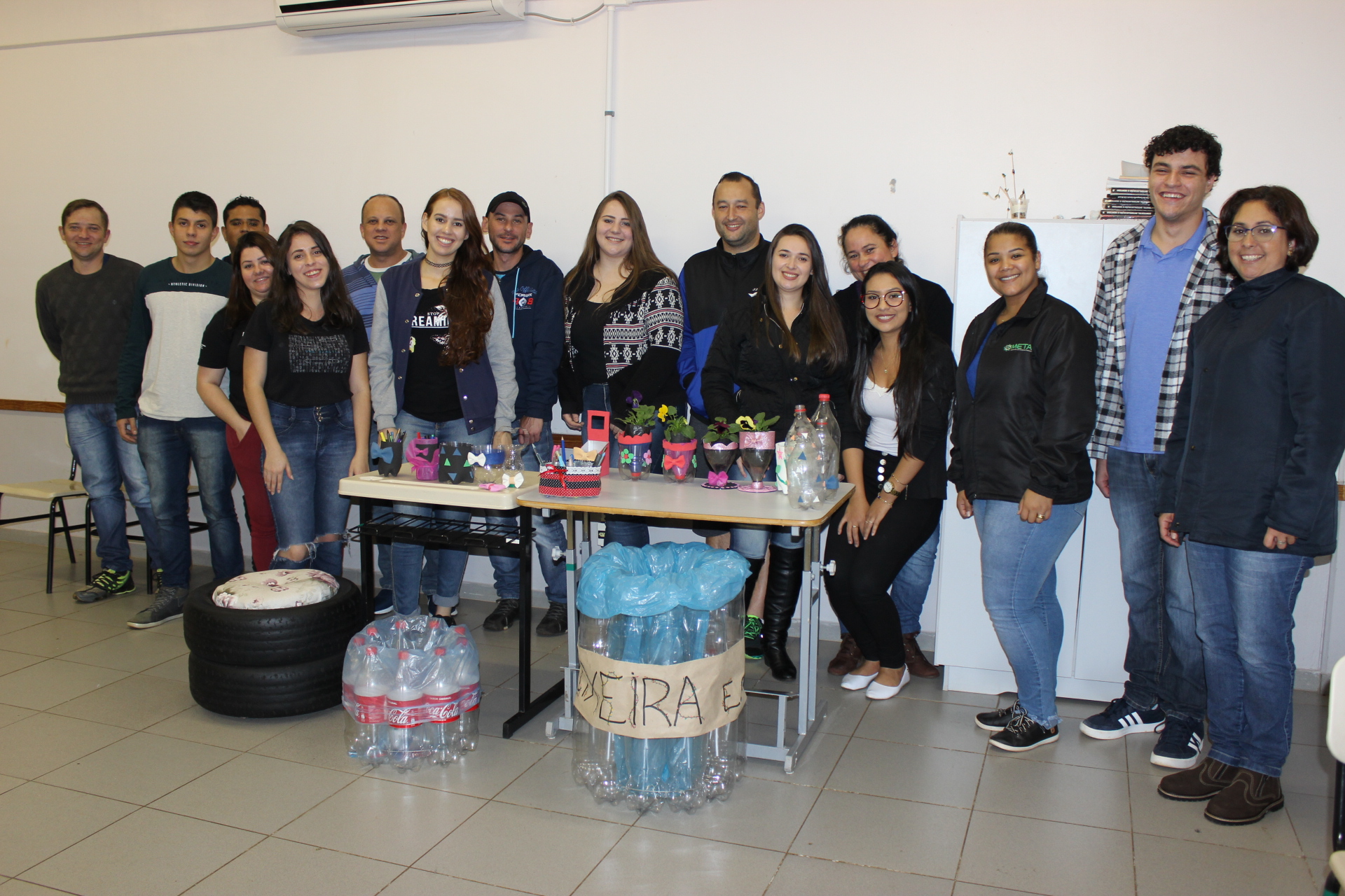 A atividade faz parte da disciplina de Educação Ambiental e consiste na reciclagem de materiais que usualmente são descartados para criação de novos objetos, prolongando sua vida útil.
