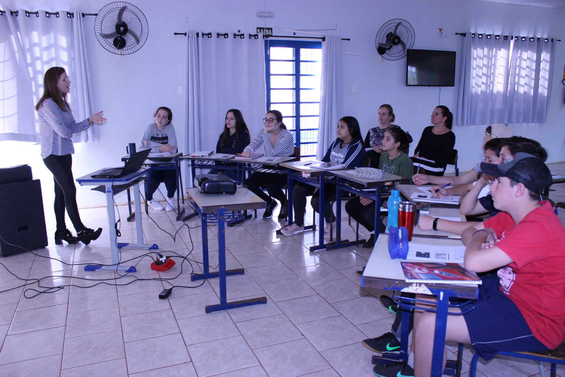 Na tarde de quarta-feira, 12/06, a discente Leticia Bonfada Matschinske, do 2º ano do Curso Técnico Integrado em Química, proponente da ação, e a relações públicas Tina Franchi, realizaram o 1º encontro com alunos/as da Escola Estadual de Ensino Fundamental São Pio X, do município de Bozano.