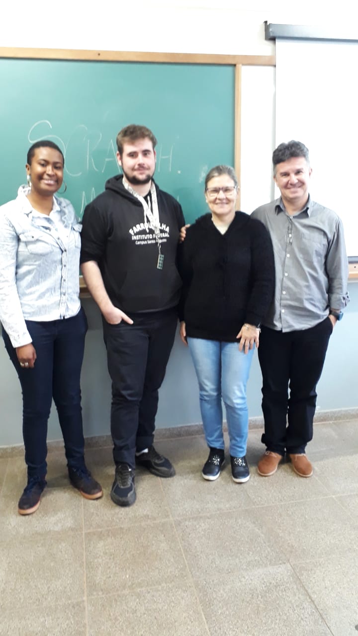 Na manhã de quarta (18), uma oficina introdutória sobre Scratch foi ministrada no Campus Panambi pelo professor Adão Caron Cambraia e pelo bolsista Uianes Biondo, do IFFar – Campus Santo Augusto, contando com o apoio da professora Sandra Nonenmacher e da bolsista Victoria Botelho. A atividade objetivou contextualizar docentes da Escola Poncho Verde, as quais acompanharão as atividades do curso.