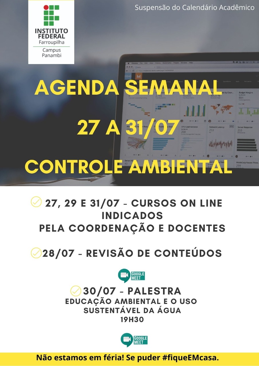 Atividades da semana - 27 a 31 de julho