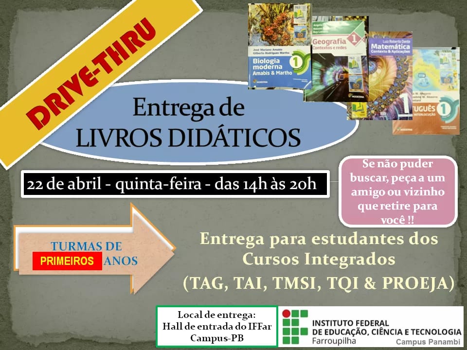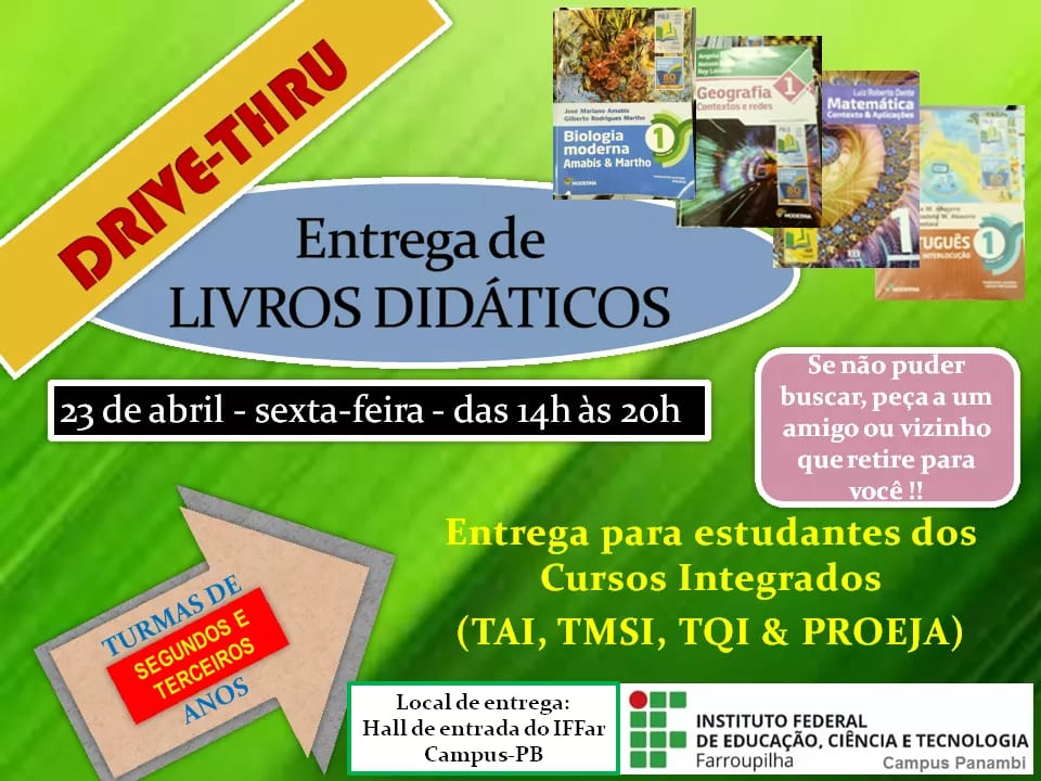 Na quinta e sexta-feira, 22 e 23 de abril, serão entregues os livros didáticos para estudantes dos cursos técnicos integrados ao Ensino Médio.