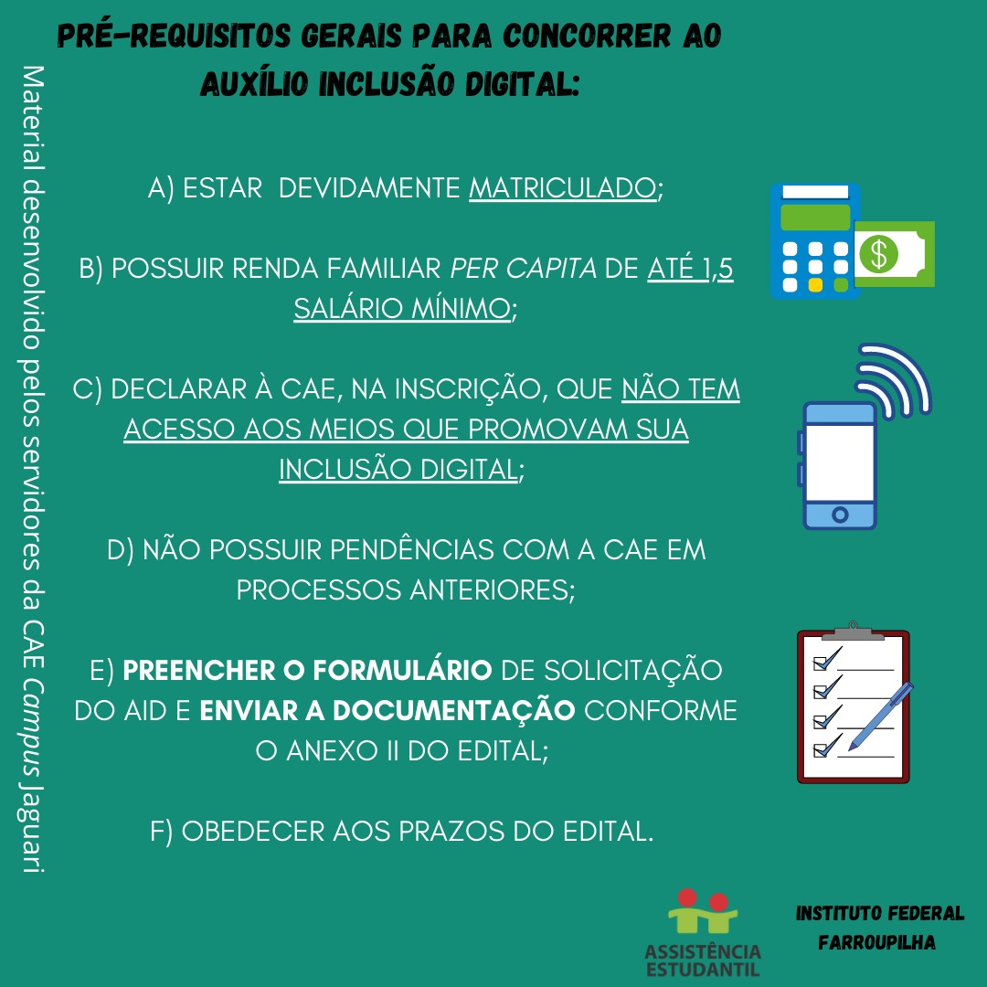 Ambos editais contemplam estudantes com renda per capta de até 1,5 salário.
