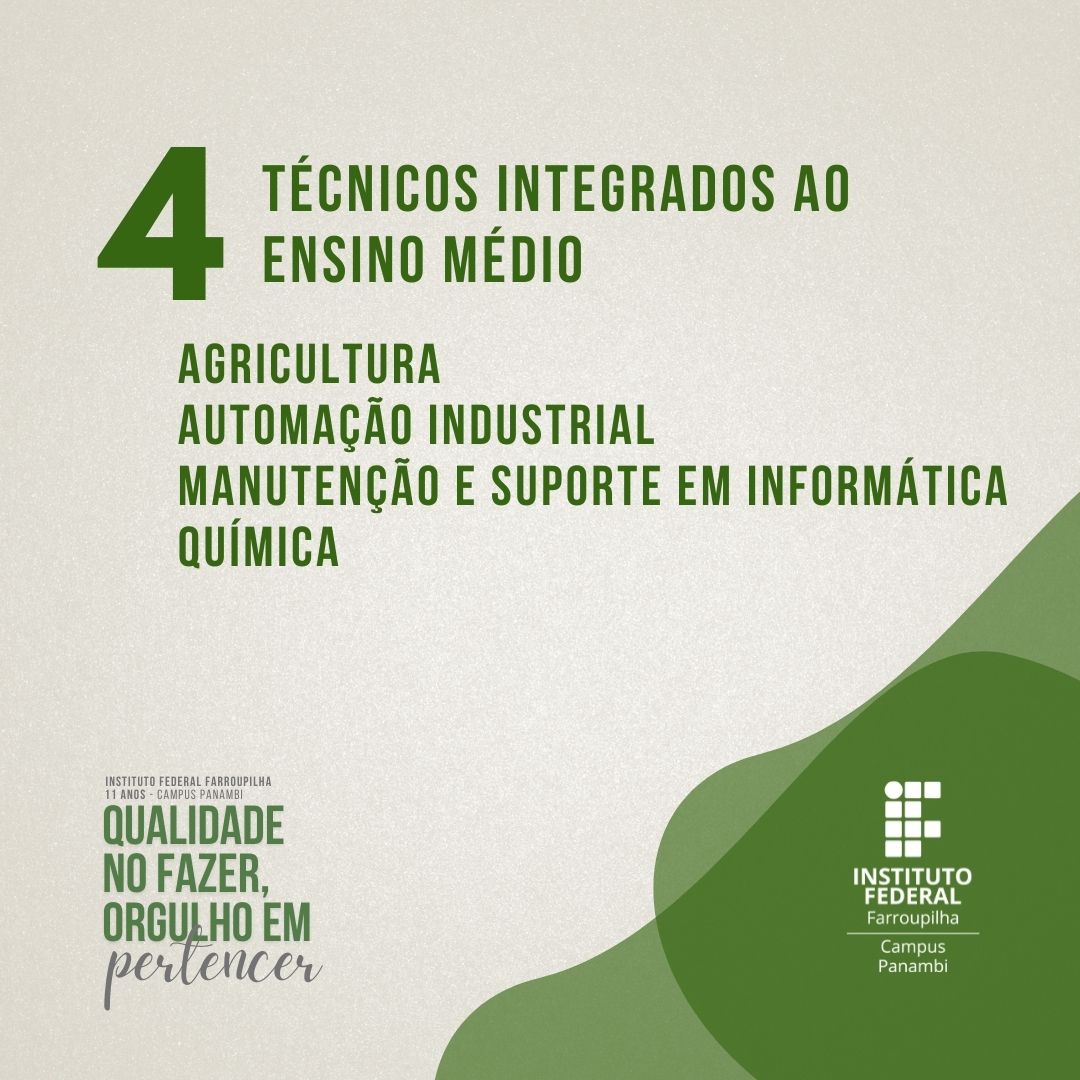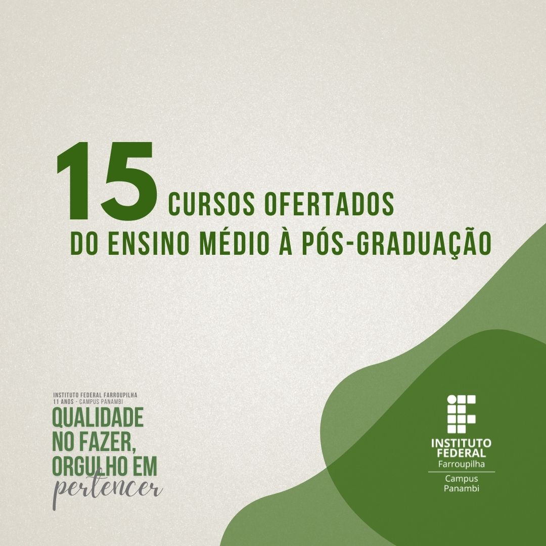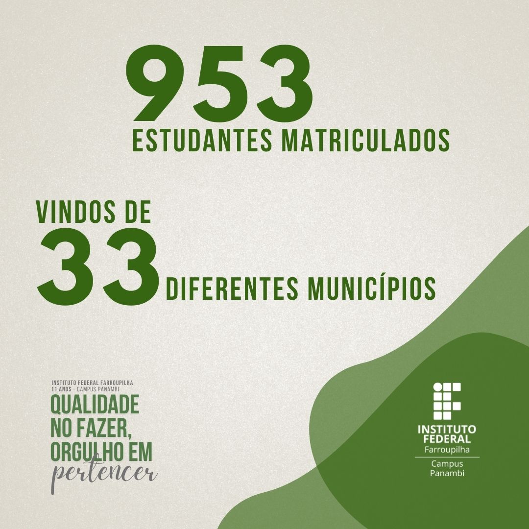 Atualmente temos 15 cursos no Campus Panambi, ofertando educação profissional técnica e tecnológica para 953 alunos matriculados, oriundos de 33 diferentes municípios. Para dar suporte e apoio à nossa comunidade interna e desenvolver, articular e manter parceiras com entidades e comunidade externa, contamos com 64 docentes efetivos, 9 docentes substitutos, 55 técnicos administrativos em educação e 15 servidores terceirizados.