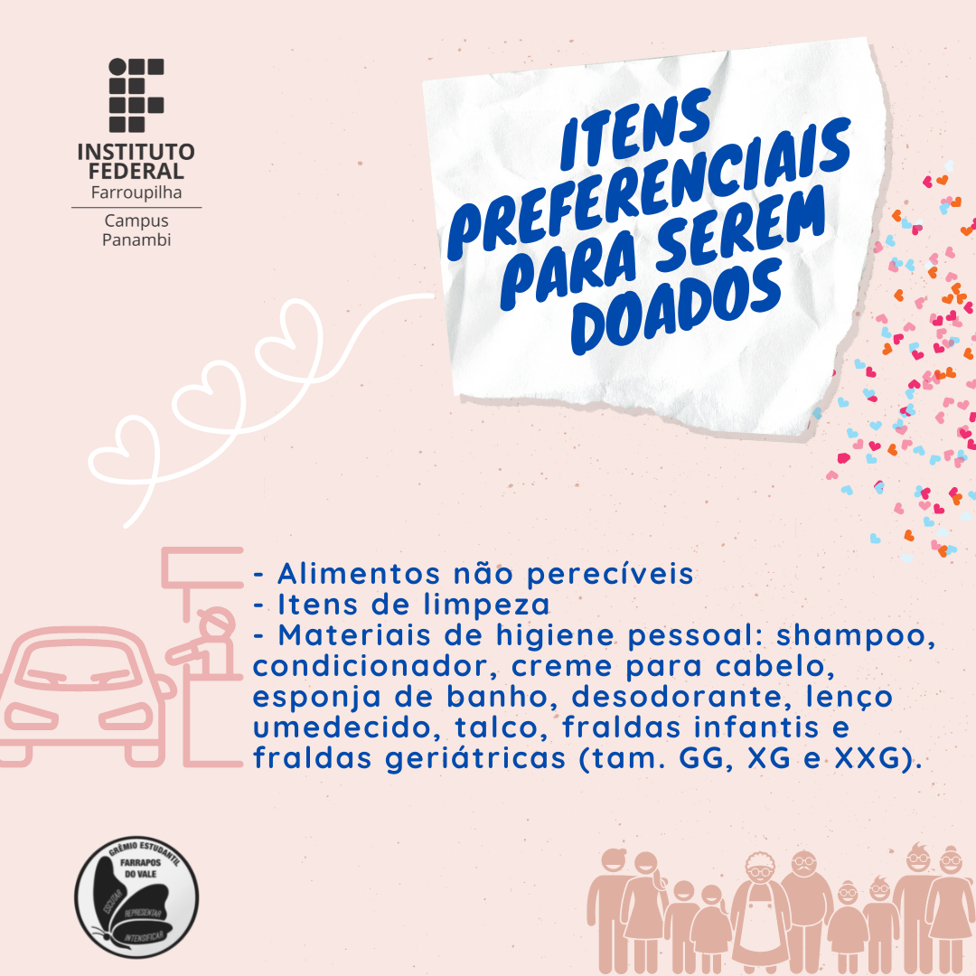 18/09 – 14h às 16h - Drive thru solidário para arrecadação de itens para famílias e entidades