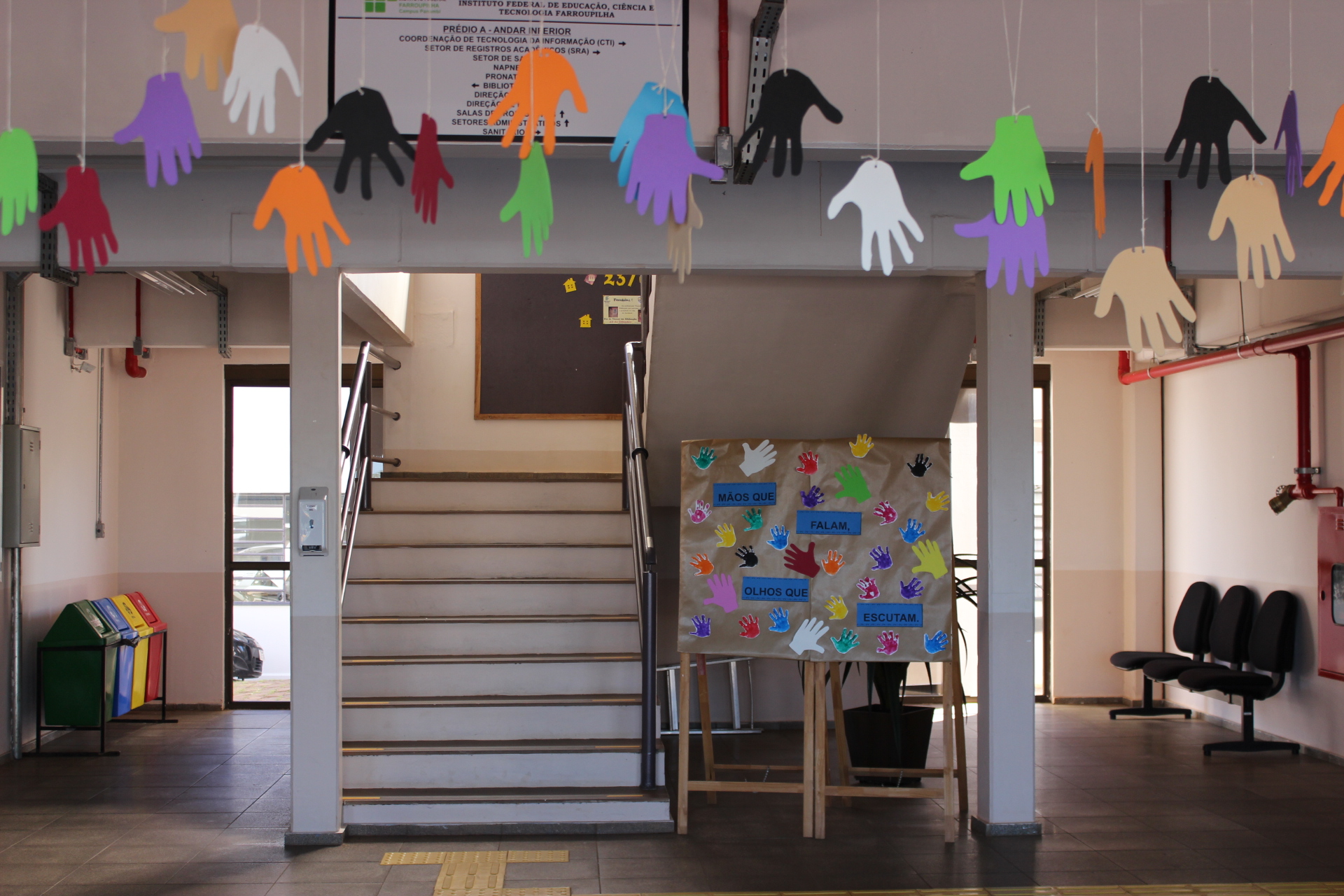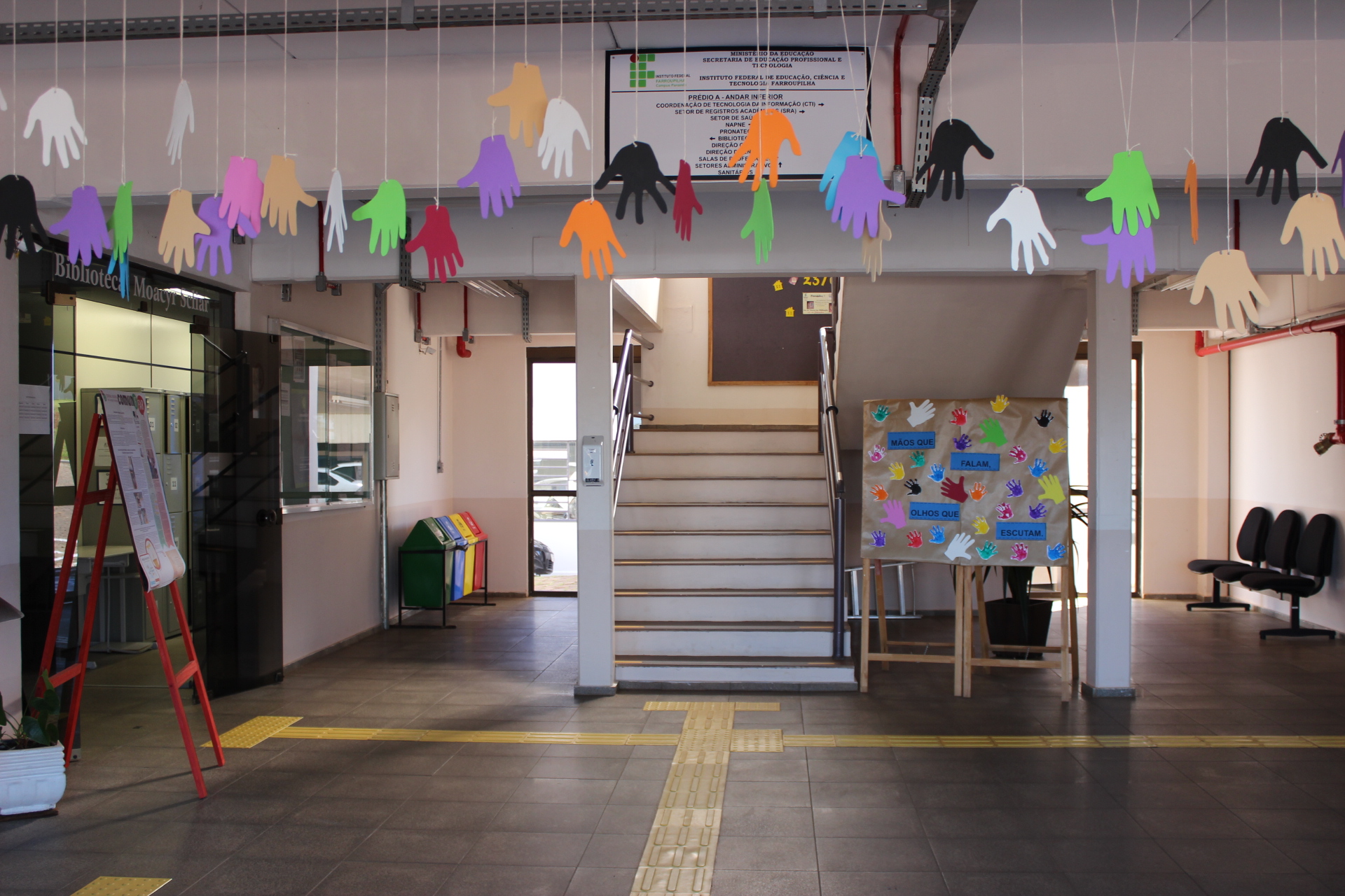 Para assinalar a data, integrantes do Núcleo de Núcleo de Apoio às Pessoas com Necessidades Educacionais Especiais (NAPNE), ligados à CAI, realizaram uma ambientação no hall de entrada do Campus, com cartazes e vídeos com sinais básicos de convivência, além de promover atividades de sensibilização nas salas de aulas.
