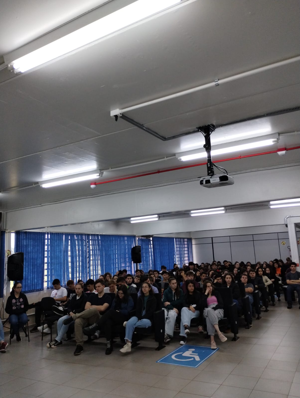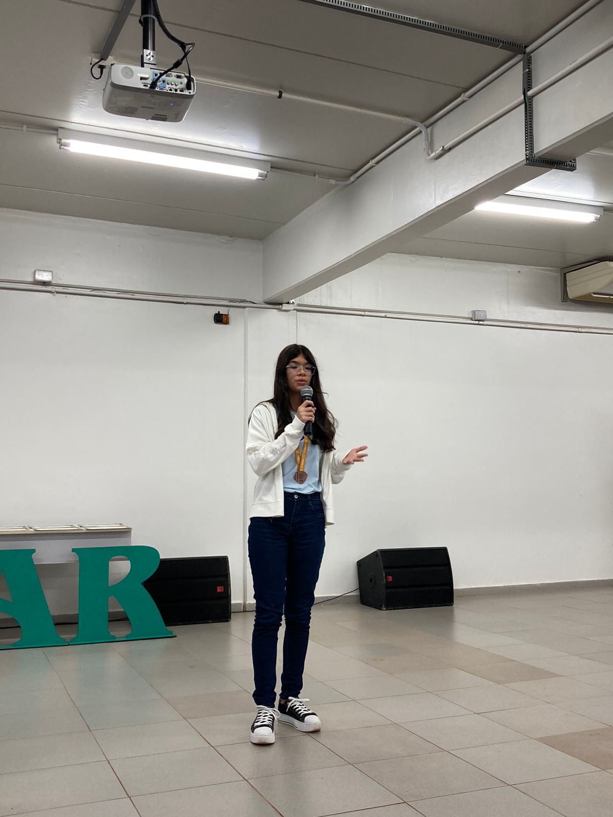 No dia 23/05, os alunos dos cursos de ensino médio integrado participaram de uma fala de incentivo à participação na prova da OBMEP 2024, contando com a presença da aluna Daniela (EEEM Poncho Verde), medalhista de ouro da OBMEP 2023.