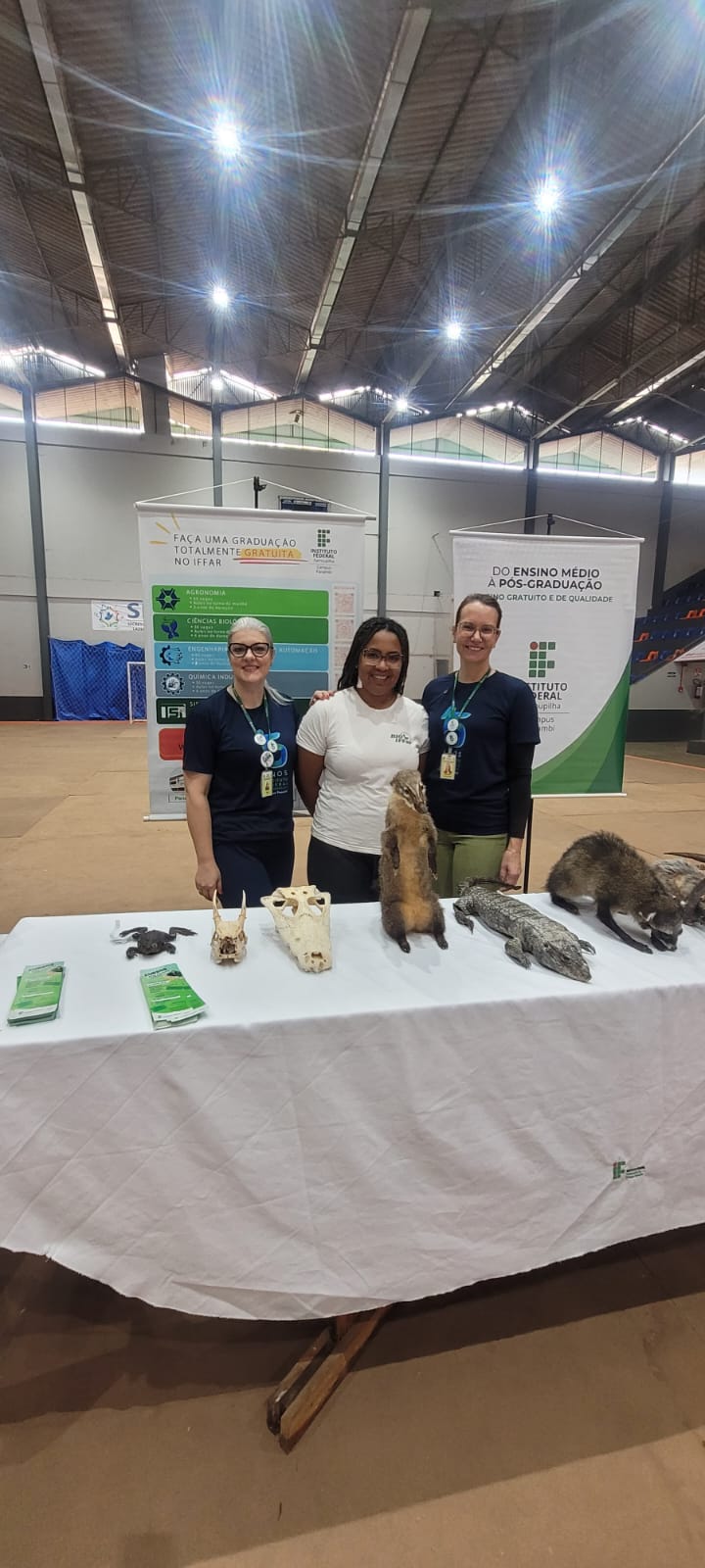 O espaço do IFFar na Feira também contou com a participação do Núcleo de Arte e Cultura (NAC), que realizou a ambientação do estande, apresentou trabalhos artísticos e expôs a Cartilha de Educação Patrimonial, desenvolvida pela professora Josiane Pillar Hinning. Outro destaque foi a exposição de animais taxidermizados, promovida por estudantes e professores do curso de Licenciatura em Ciências Biológicas, e as ações do projeto Educar para Sensibilizar, que propõe reflexões sobre as interações entre a população, o meio ambiente e a valorização de todo tipo de vida.