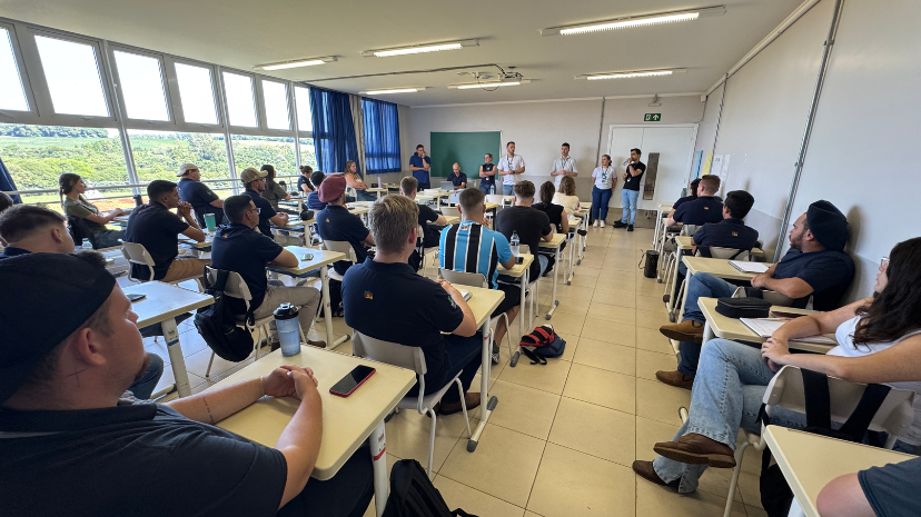 Durante o primeiro dia, os estudantes participaram de diferentes momentos de acolhimento. A programação incluiu recepção institucional, tour pelo campus, lanche especial e falas das equipes diretivas e coordenações de curso. O momento também foi marcado por reencontros e conversas entre colegas após o período de férias.