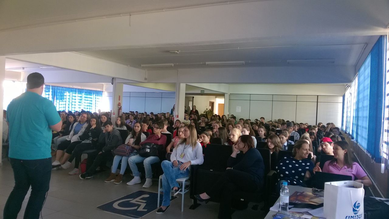 Para falar sobre o tema “Compreendendo as Drogas”, Matias Nunes Frizzo, professor do Departamento de Ciências da Vida da Vida da UNIJUÍ, reuniu-se com os alunos no auditório, na tarde de 31/07. A palestra abordou o efeito tóxico das drogas ao Sistema Nervoso Central, cujos exemplos foram ilustrados com imagens de cérebros de animais sob efeito do uso de drogas, após algum tempo de suspensão de uso e também de animais sem efeito de drogas. Assim os alunos puderam compreender, de forma didática e ilustrada, o quão prejudicial é o consumo de drogas ao organismo – sejam elas lícitas, como o tabaco, o álcool e fármacos, como ilícitas.