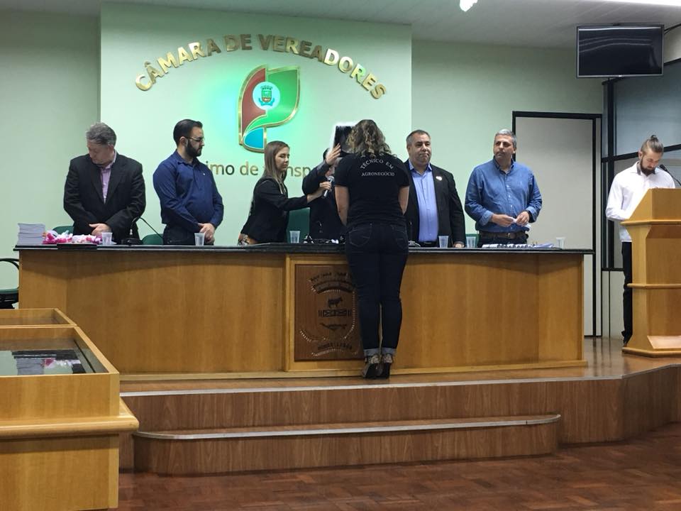A solenidade ocorreu nas dependências da Câmara Municipal de Vereadores, e foi prestigiada pelo Vice-Prefeito Pedro Paulo Falcão da Rosa, pelo Vereador Charles Morais, representando a Câmara Municipal de Vereadores, pelo Secretário de Desenvolvimento Jair Kilpp, pela tutora e paraninfa da turma, Débora Fath, além de amigos, familiares e demais convidados.