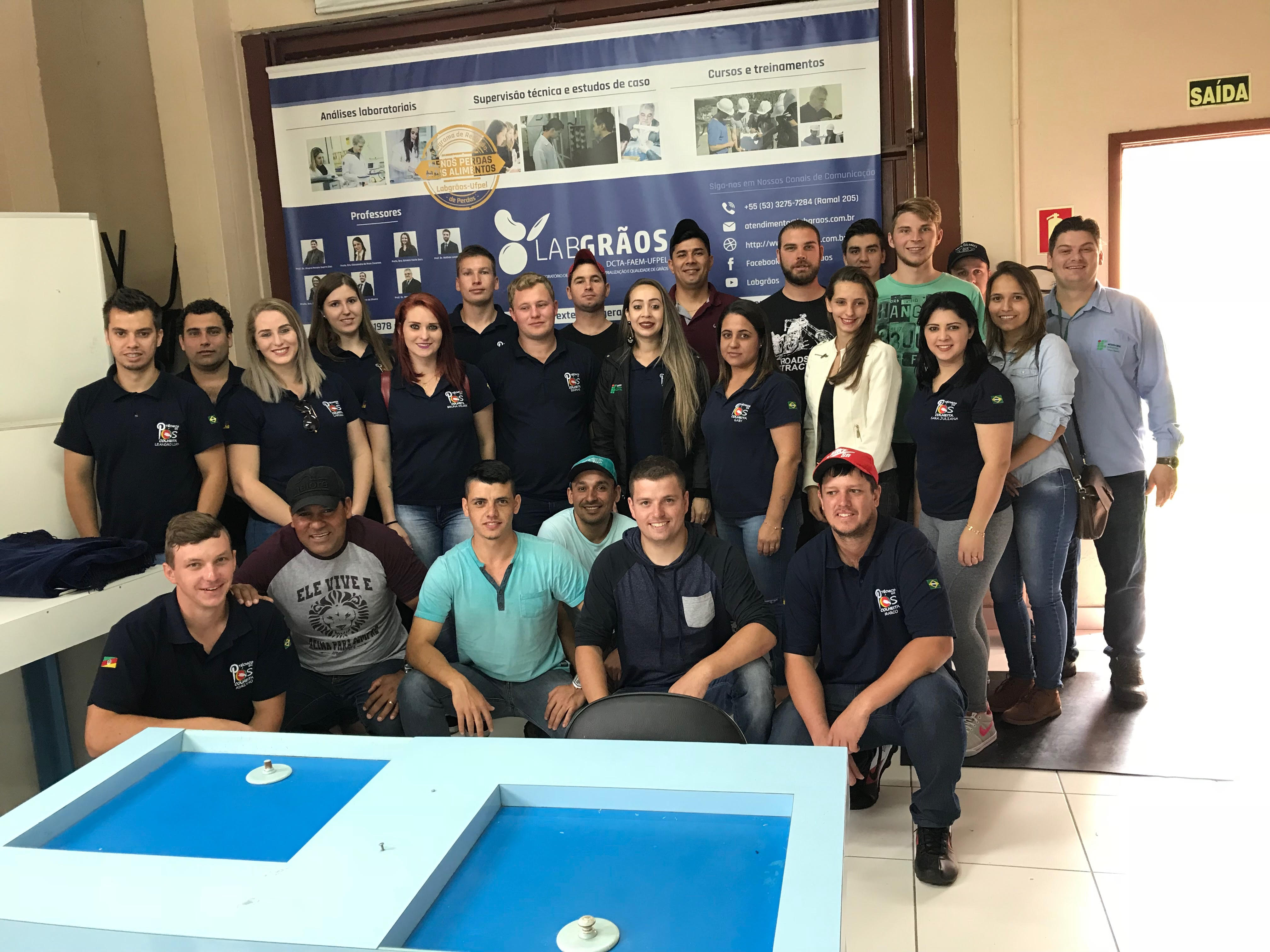 Nos dias 3 e 4 de novembro as turmas do 2º e 4º semestre do Curso Técnico em Pós-Colheita do IFFar – Campus Panambi realizaram três visitas técnicas na Zona Sul do Estado do Rio Grande do Sul. A primeira delas foi no Laboratório de Pós-Colheita e Industrialização de Grãos da Faculdade de Agronomia na Universidade Federal de Pelotas. No local o grupo foi recebido pelo professor Moacir Cardoso Elias, que possui 44 anos dedicados aos trabalhos na UFPEL, sendo o pioneiro em pesquisas na área de pós-colheita de grãos no Brasil. Os alunos conheceram as modernas tecnologias para a pesquisas em pós-colheita, como o uso de nanotecnologia para enriquecer nutricionalmente os grãos para a alimentação humana.
