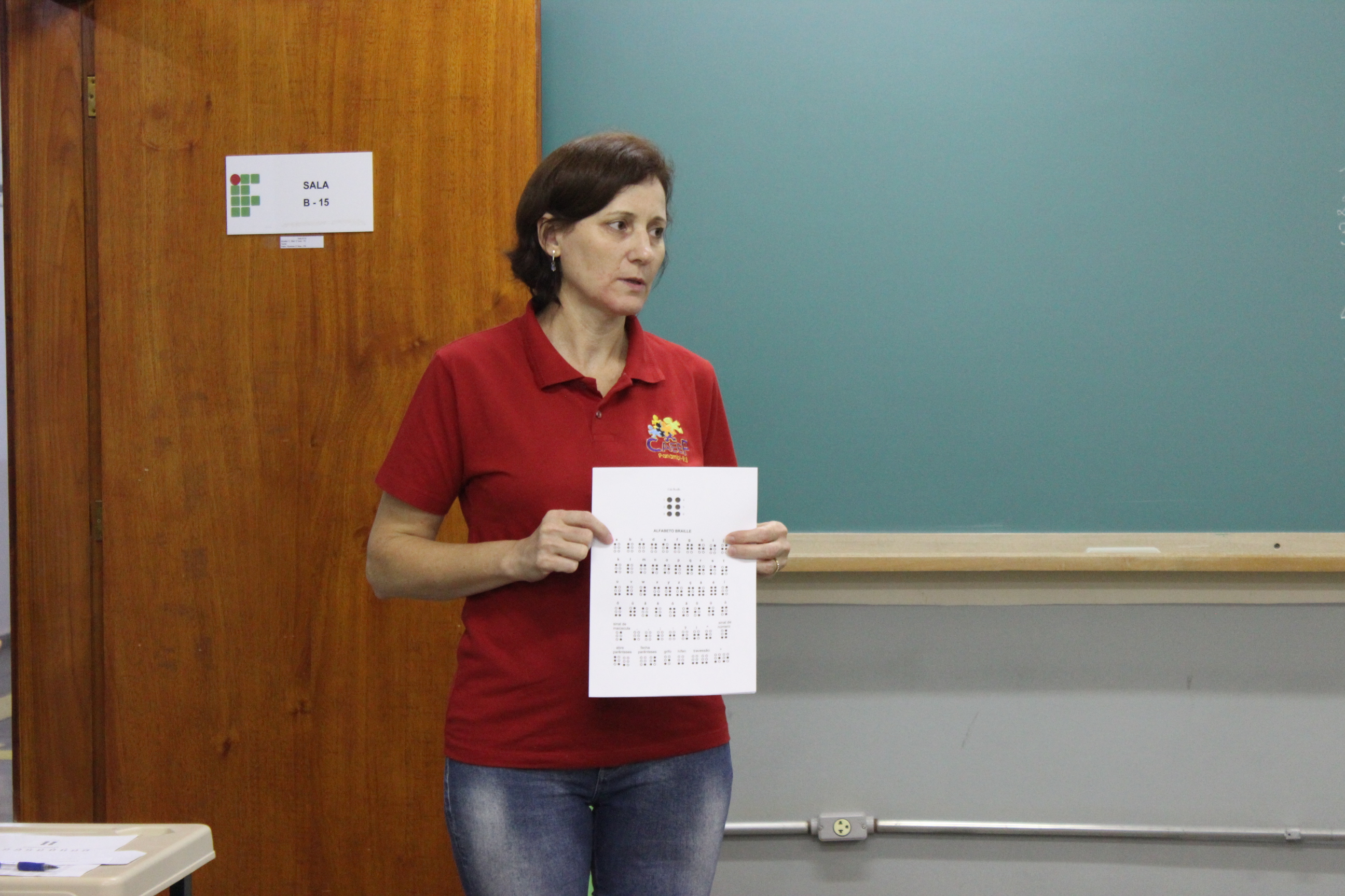 Alunos dos cursos de Licenciatura em Ciências Biológicas e em Química do IFFar – Campus Panambi que cursam a disciplina de “Diversidade e Inclusão” participaram de uma oficina de Braille, ofertada pela professora Rosane Inês Thomas, do Centro de Atendimento Educacional Especializado Panambi (CAEEP).