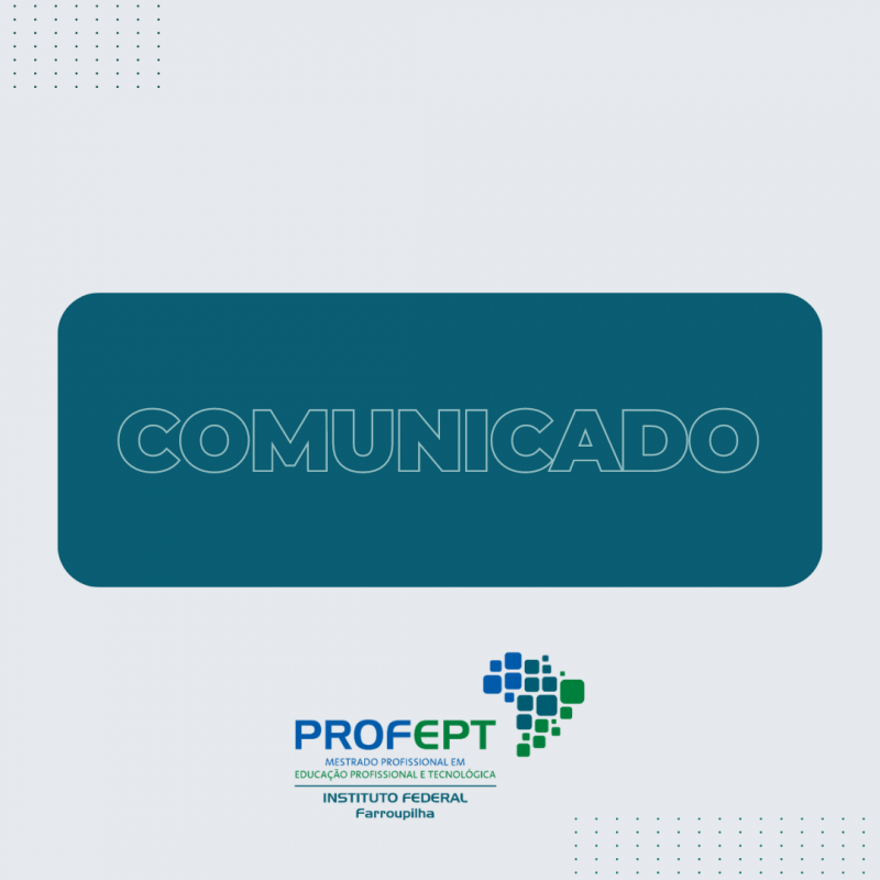 O Programa de Mestrado Profissional em Educação Profissional e Tecnológica (PROFEPT) do Instituto Federal de Educação, Ciência e Tecnologia Farroupilha (IFFAR) tem a satisfação de anunciar o resultado do Processo Seletivo para a Turma 2024, conforme edital publicado em 15 de março de 2024.