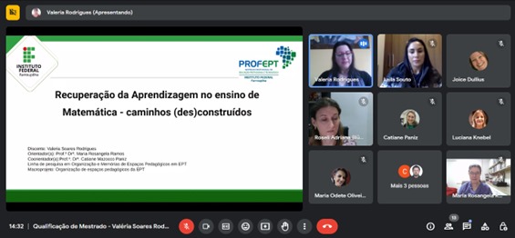 Dia 18/08 - qualificação do projeto de pesquisa intitulado “Recuperação da Aprendizagem no ensino de Matemática - caminhos (des)construídos”, de autoria da mestranda Valéria Soares Rodrigues, orientada pela professora Dra. Maria Rosângela Silveira Ramos e Coorientado pela professora Dra. Catiane Mazocco Paniz.