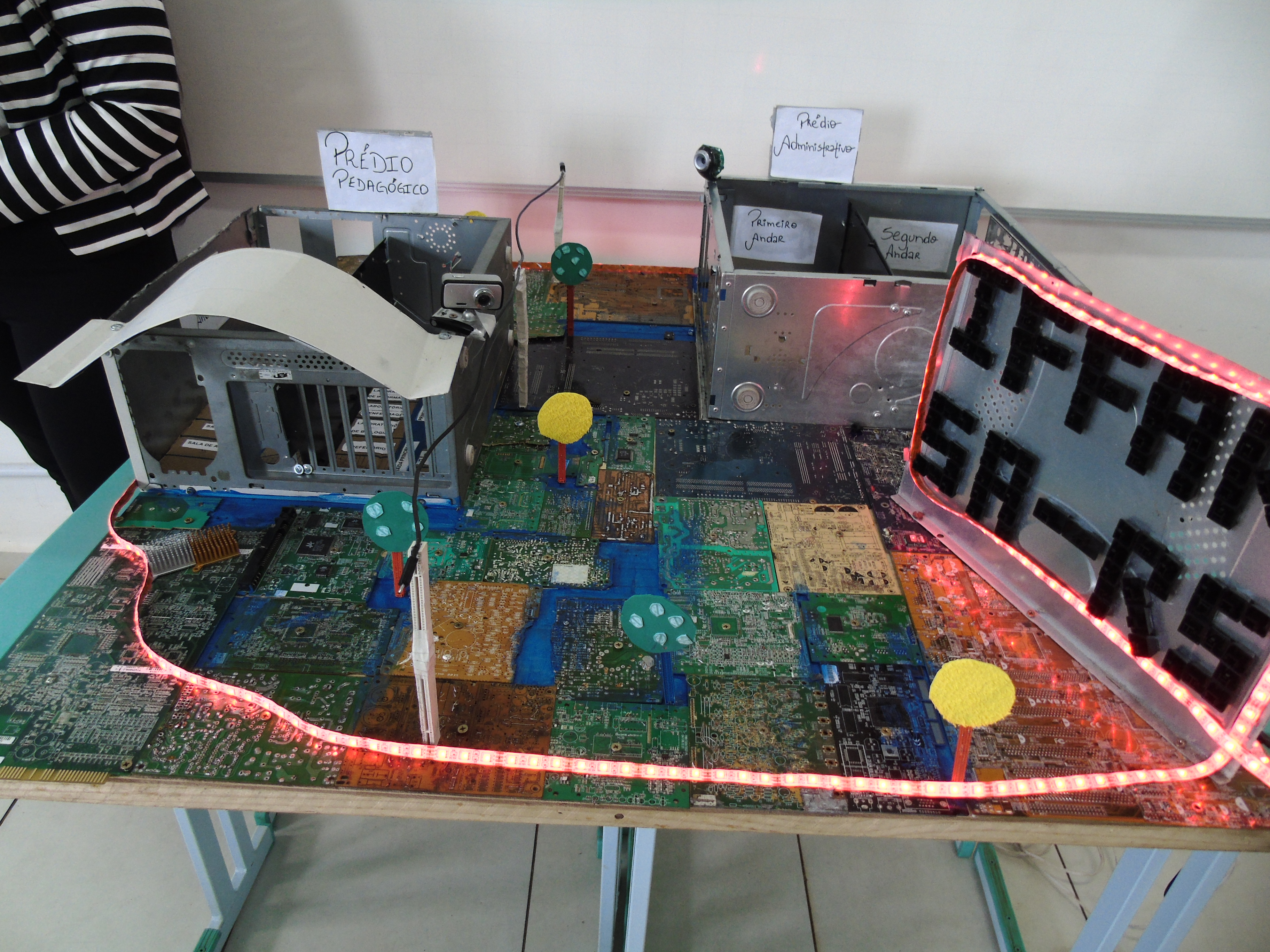 à Área Informação e Comunicação – Projeto com sensor ultrassônico utilizando a plataforma Arduino – Daniel S. Rodrigues, Fernando Barrachini, João V. C. Toso, Pedro H. Ebone, Leandro V. Libardoni Junior, João M. B. Garcia, Marilei F. Kovatli, Felipe G. Freitas – Faculdade CNEC Santo Ângelo