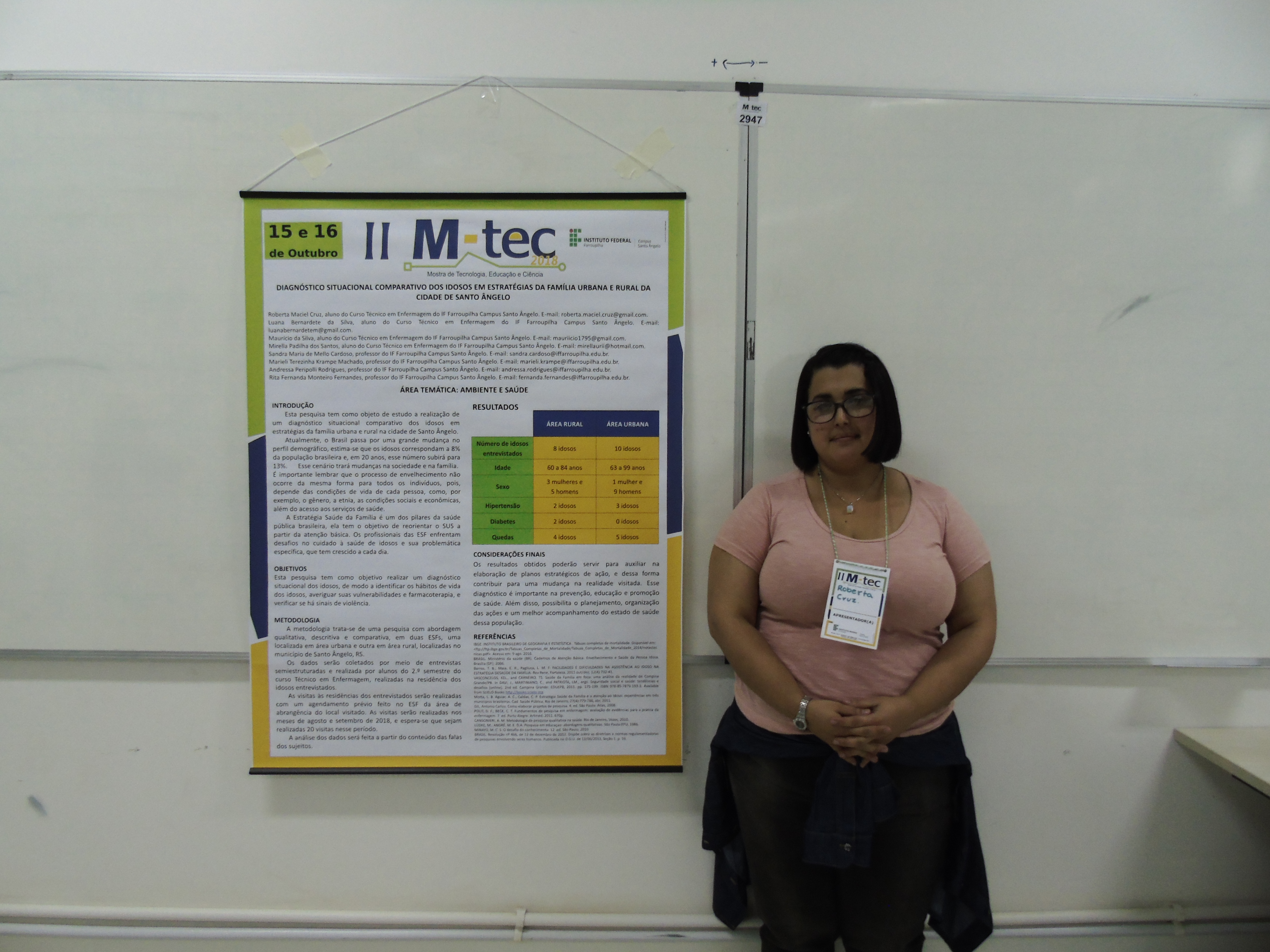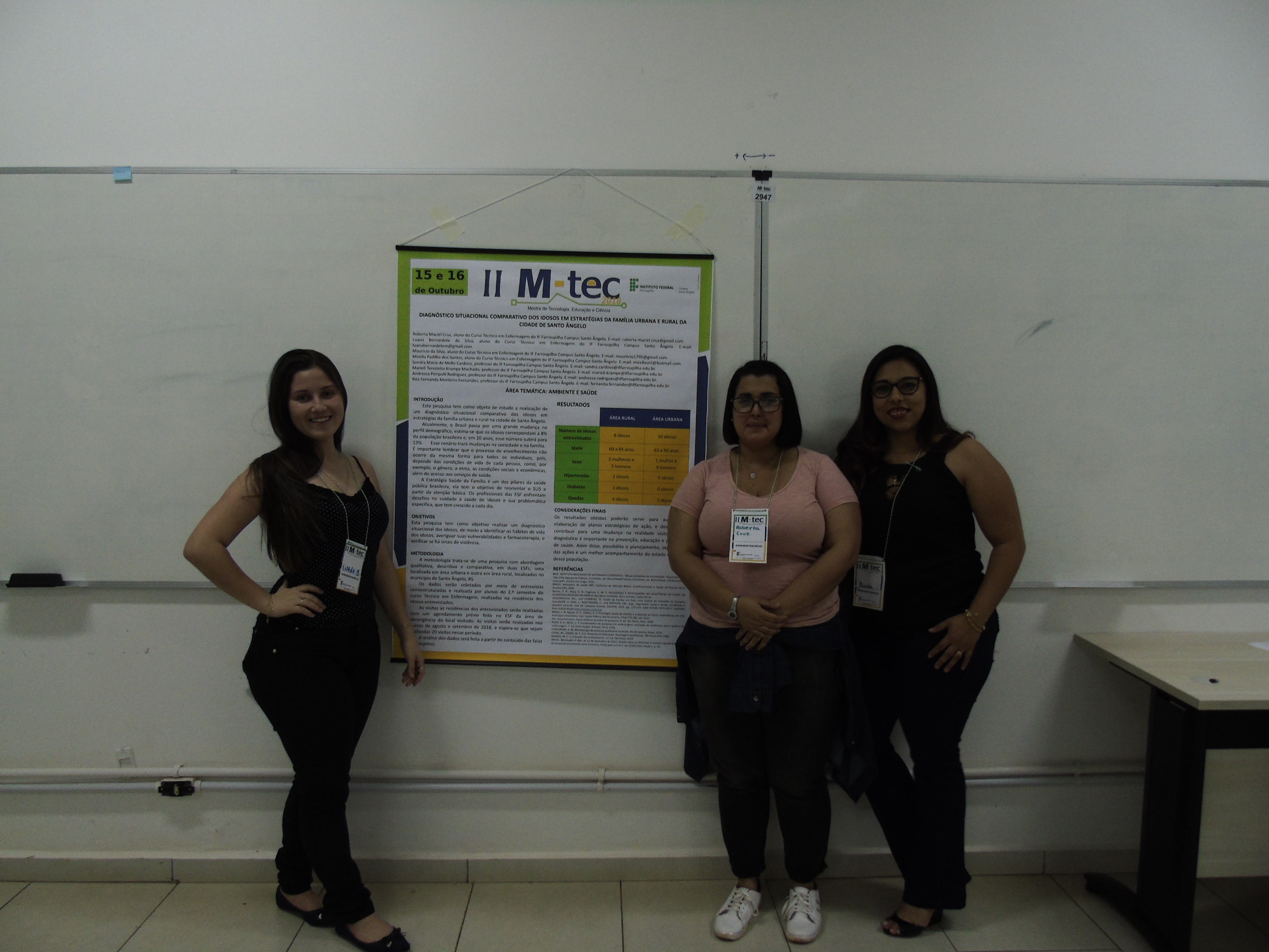 à Área Ambiente e Saúde – Diagnóstico situacional comparativo dos idosos em estratégias da família urbana e rural – Roberta M. Cruz, Luana B. Silva, Maurício da Silva, Mirella Santos, Sandra M. M. Cardoso, Marieli T. K. Machado, Andressa P. Rodrigues, Rita F. M. Fernandes – IFFar Campus Santo Ângelo