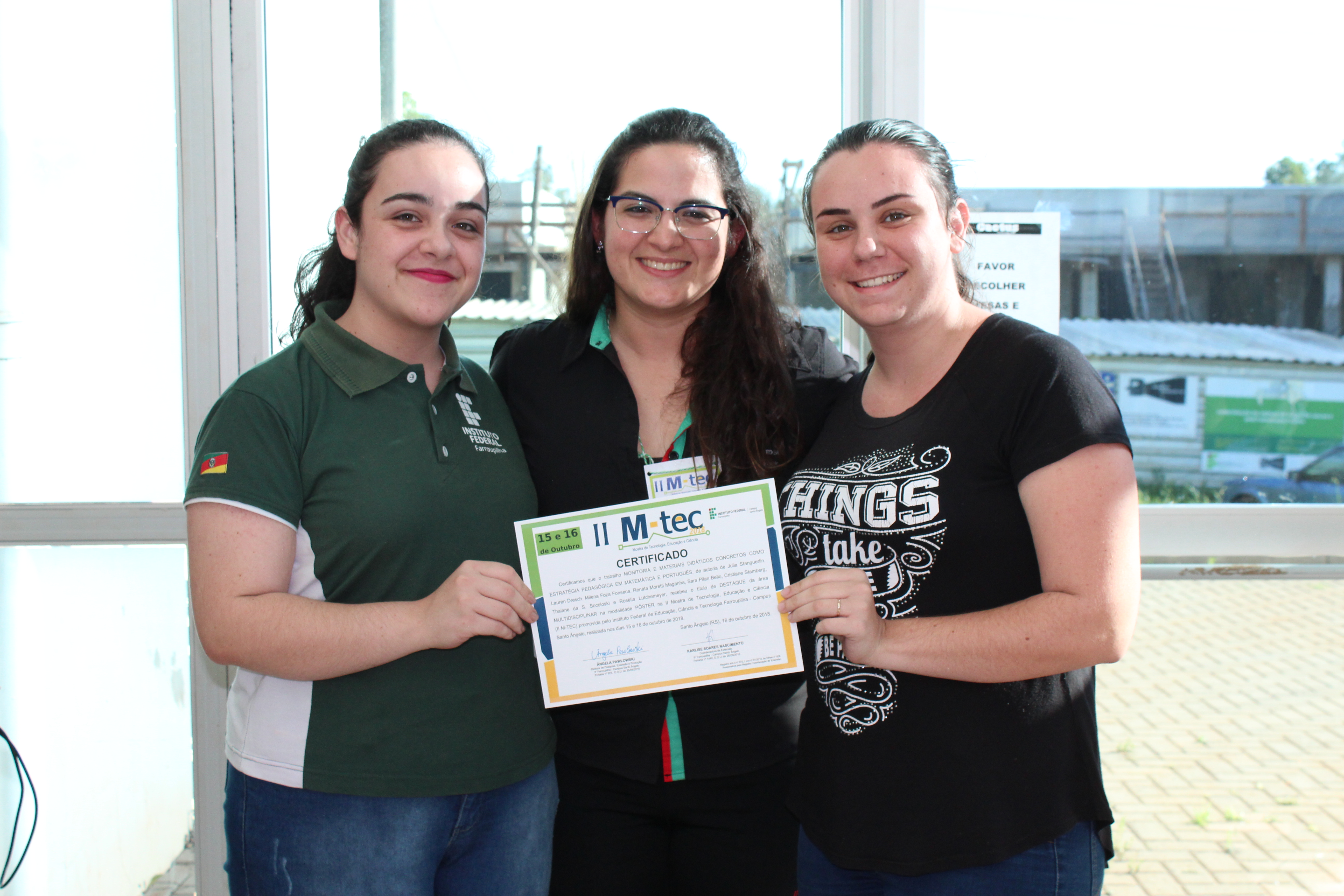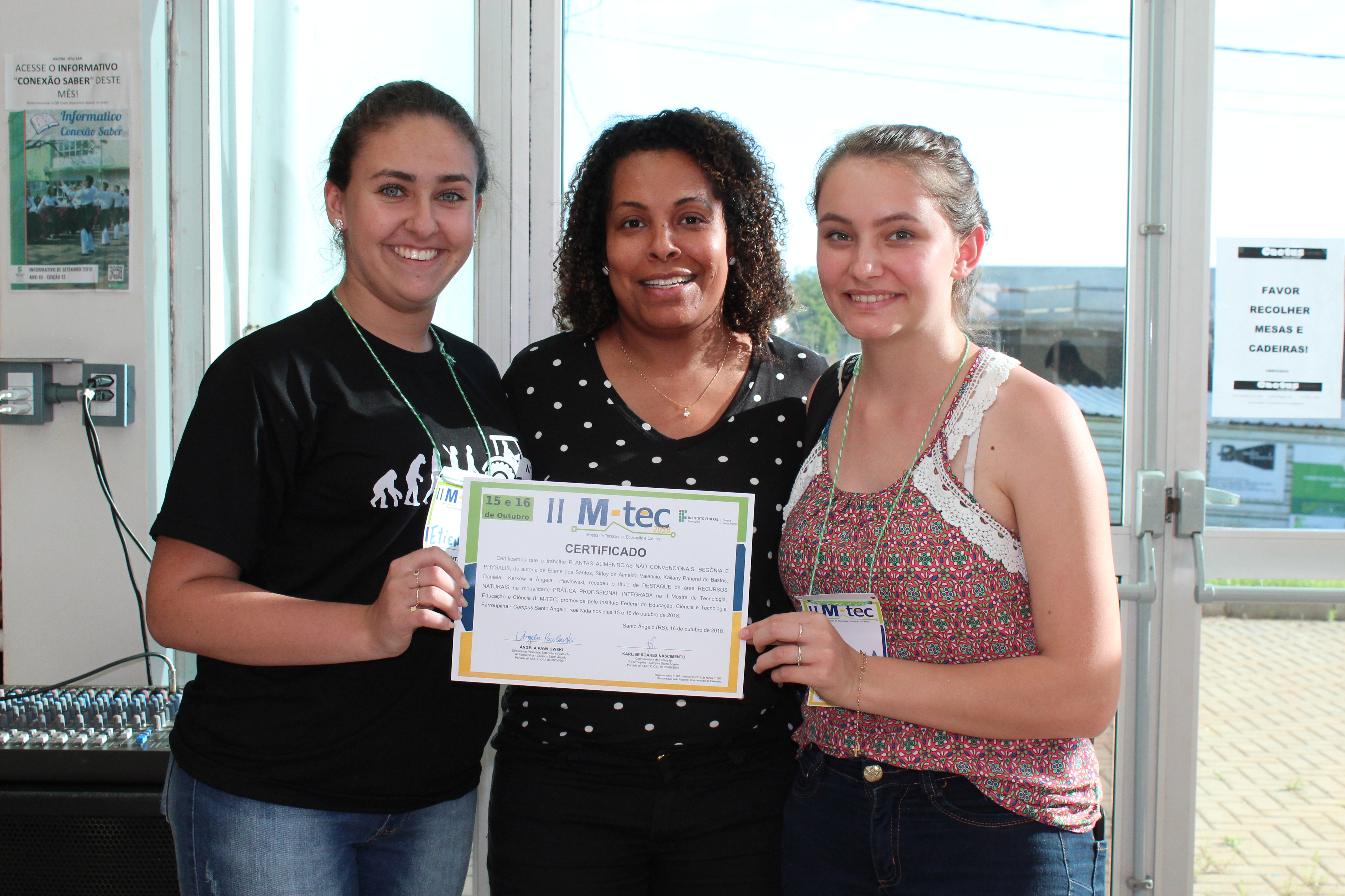 A Comissão Organizadora da II M-TEC agradece a participação dos alunos do IFFar – Campus Santo Ângelo e das instituições de ensino do município e região: Colégio Estadual Três Mártires (Palmeira das Missões/RS), Colégio Marista Santo Ângelo, Colégio Teresa Verzeri, Instituto Cenecista de Ensino Superior de Santo Ângelo, Instituto Estadual de Educação Odão Felippe Pippi, Sociedade Educacional Três de Maio (SETREM), Universidade Regional do Noroeste do Estado do Rio Grande do Sul, Universidade Regional Integrada do Alto Uruguai e das Missões (URI) - Campus Santo Ângelo.