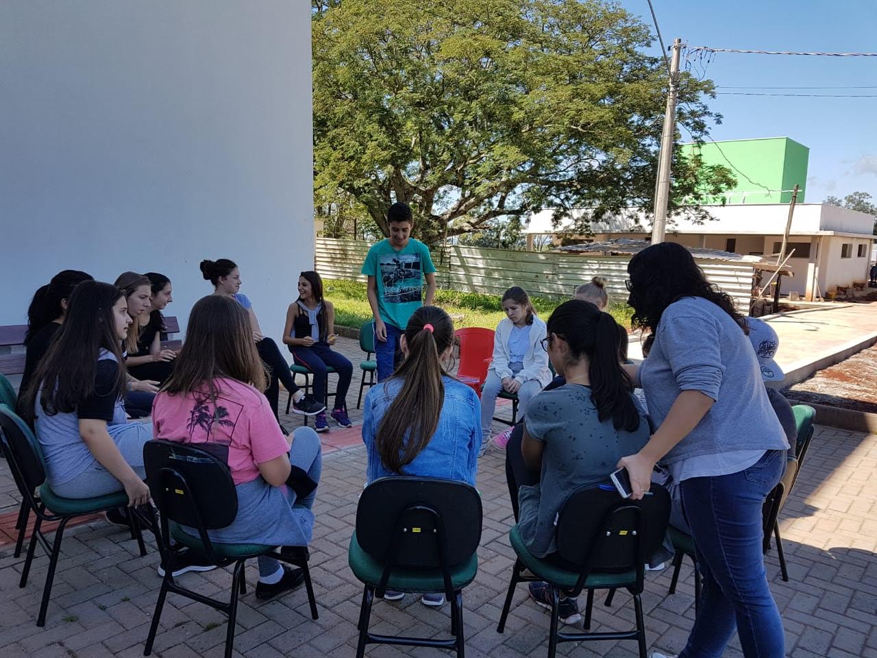 As facilitadoras de práticas restaurativas Daniela Camargo e Thaiane Socoloski, juntamente com a Técnica em Assuntos Educacionais Medianeira Weyh, estão realizando desde o mês março círculos de construção de paz para os estudantes que ingressaram em 2019 no campus Santo Ângelo. O objetivo desta prática é de aproximar e conhecer os estudantes ingressantes além de proporcionar um espaço de acolhida e cuidado, buscando a prevenção da evasão.