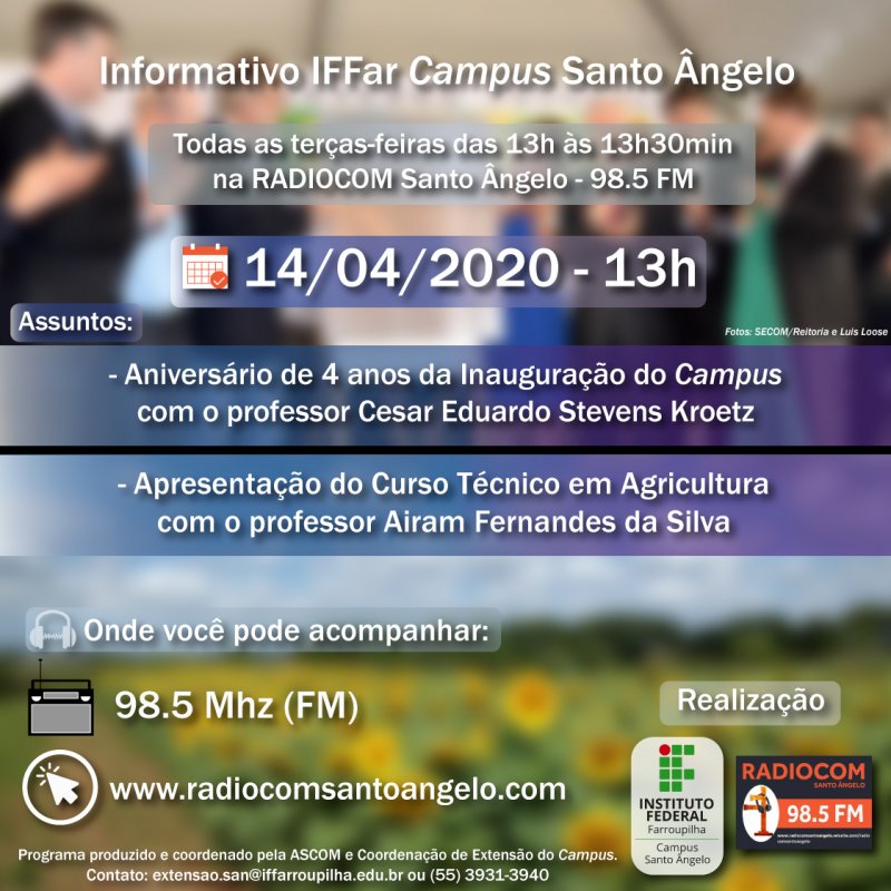 Nesta terça-feira (31/03) às 13h o IFFar SAN estará no seu rádio (98.5 FM), celular ou computador, através da RADIOCOM Santo Ângelo.