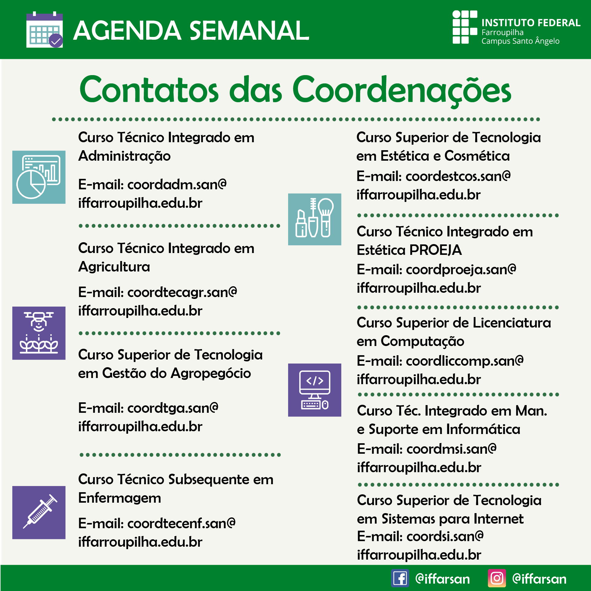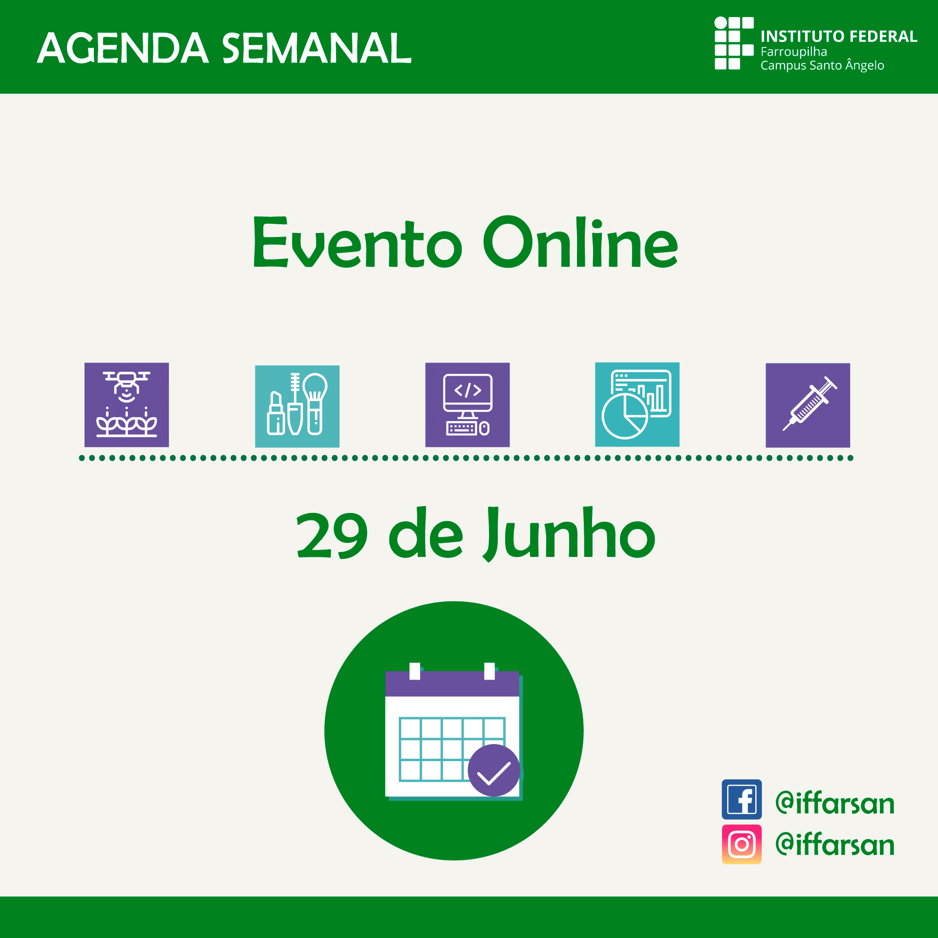 Fique por dentro da programação por meio do nosso site e redes sociais no Facebook e Instagram (@iffarsan).