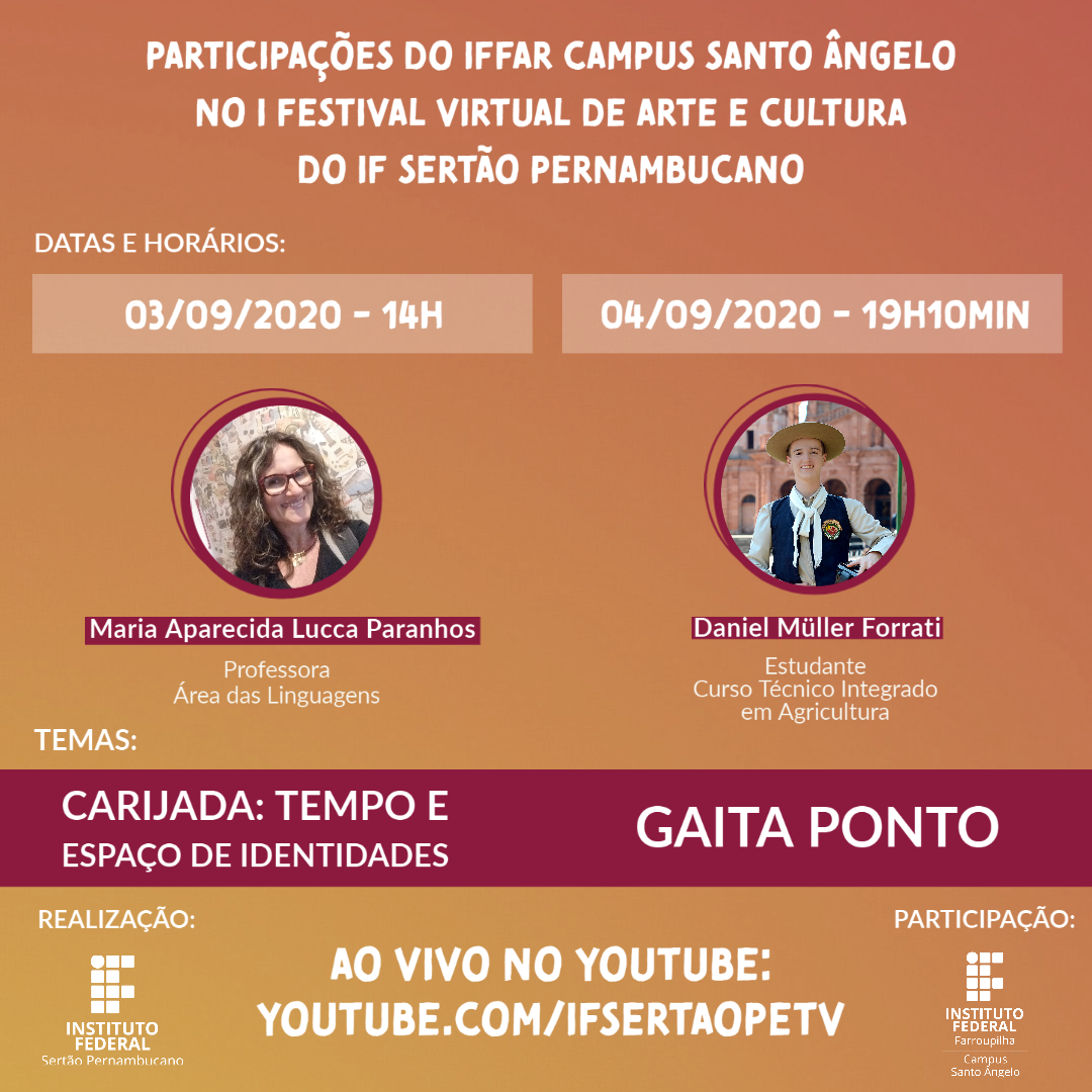 O Instituto Federal do Sertão Pernambucano está promovendo nesta semana, de 02 a 04/09/2020 o I Festival Virtual de Arte e Cultura.