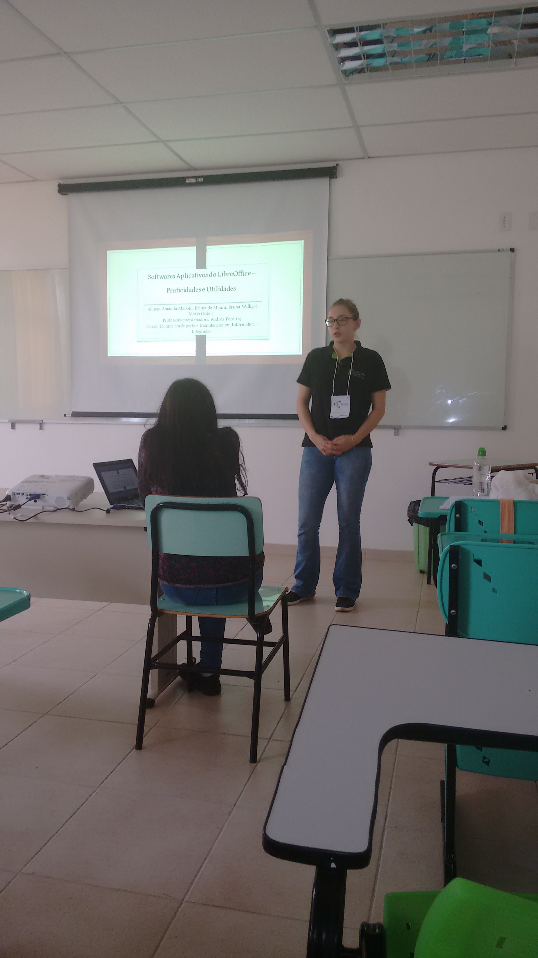 As alunas Amanda Thalia Maboni , Bruna Willig Kopplin, Bruna de Moura e Maria Eduarda Mendes Gisler apresentaram, no formato oral, o resultado do trabalho de extensão intitulado “Aplicativos do LibreOffice – praticidades e utilidades” que foi desenvolvido IFFarroupilha – campus Santo Angelo no 2 semestre/2015, sob a coordenação da professora Andréa Pereira.