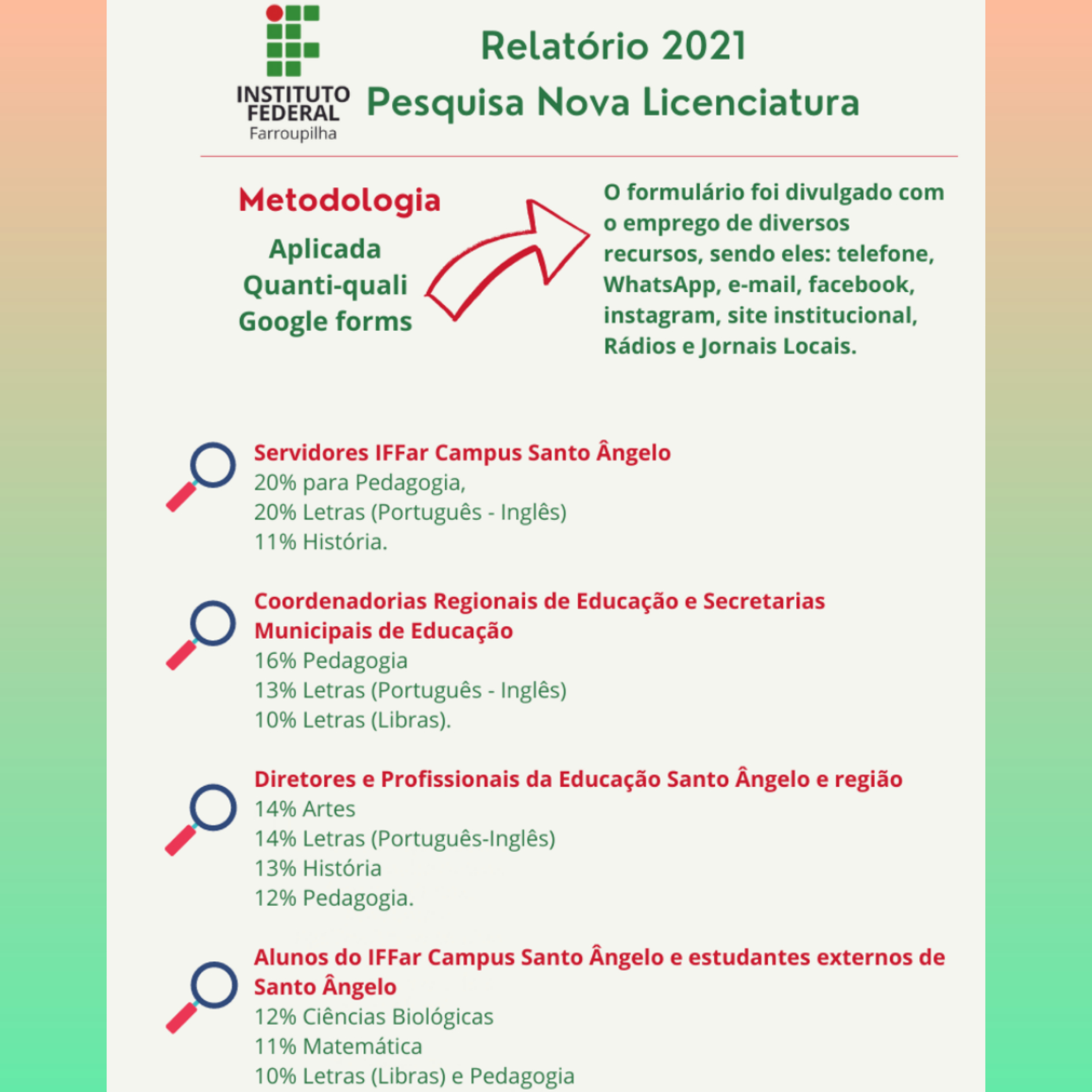 A enquete realizada teve como principal objetivo auxiliar no levantamento de curso(s) Superior(es) de Licenciatura, considerando-se que o IFFar Campus Santo Ângelo planeja acrescentar uma nova oferta, futuramente.